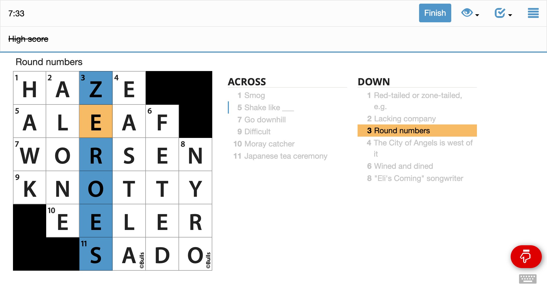 You can solve the puzzle in any order. Click a clue or a cell in the grid and start typing the solution. You can also use the arrow keys to navigate the grid. The clues for solutions that are completed are grayed out, regardless of whether or not your solution is correct.