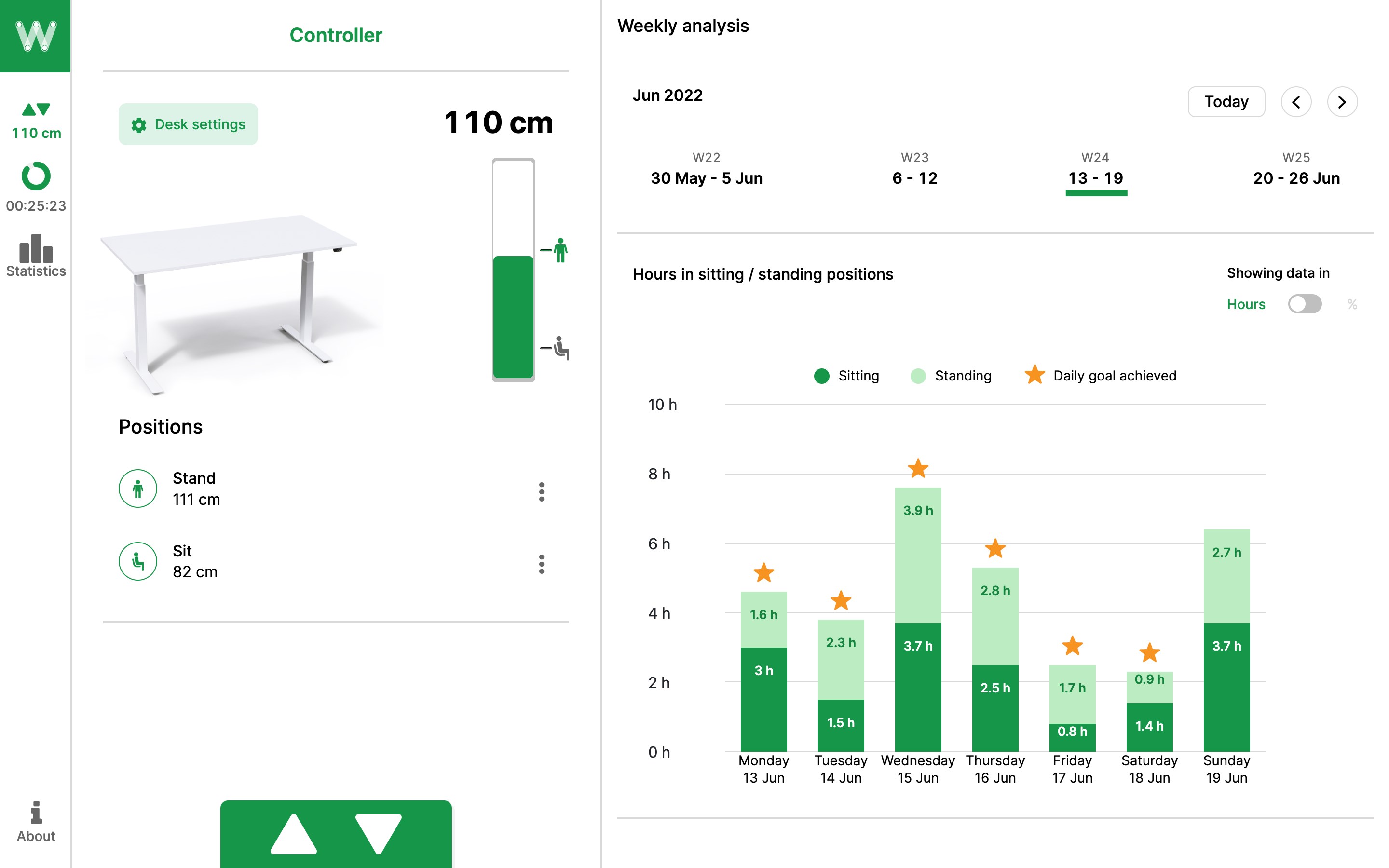 ROL Wellness is an app working in combination with height-adjustable tables to remind us to vary