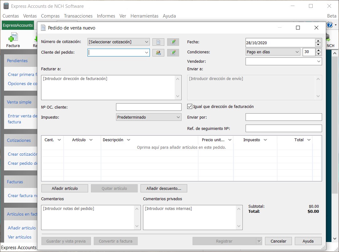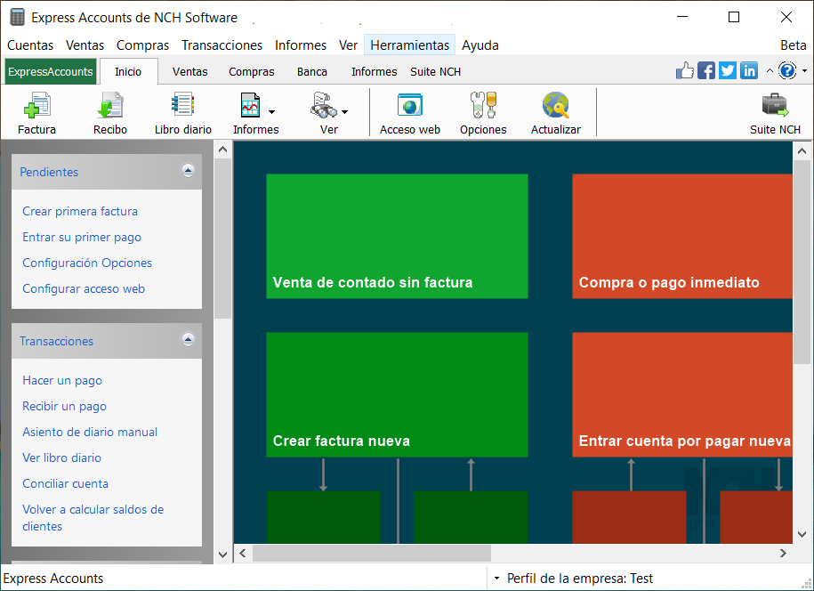 Express Accounts es un software profesional de contabilidad empresarial, perfecto para pequeñas empresas que necesitan documentar e informar sobre el flujo de caja entrante y saliente, incluyendo ventas, recibos, pagos y compras.