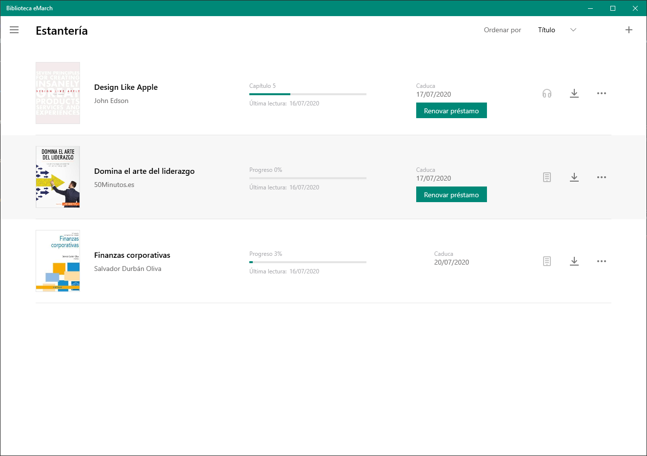 Biblioteca eMarch es una plataforma para los profesionales de Banca March, donde encontrarás libros electrónicos, revistas, audiolibros, vídeos o píldoras educativas en diferentes idiomas. Accede a miles de títulos de los mejores proveedores del mundo, para aprender a cualquier hora, en cualquier formato y desde cualquier dispositivo. Recomendación inteligente y actualizada de contenidos que te permitirá un aprendizaje ilimitado. Especialízate y certifícate en múltiples áreas gracias a los itinerarios de aprendizaje. Aprendizaje colaborativo dentro de tu equipo o con otros miembros de Banca March, dentro del Learning Club.