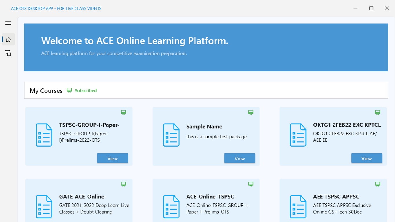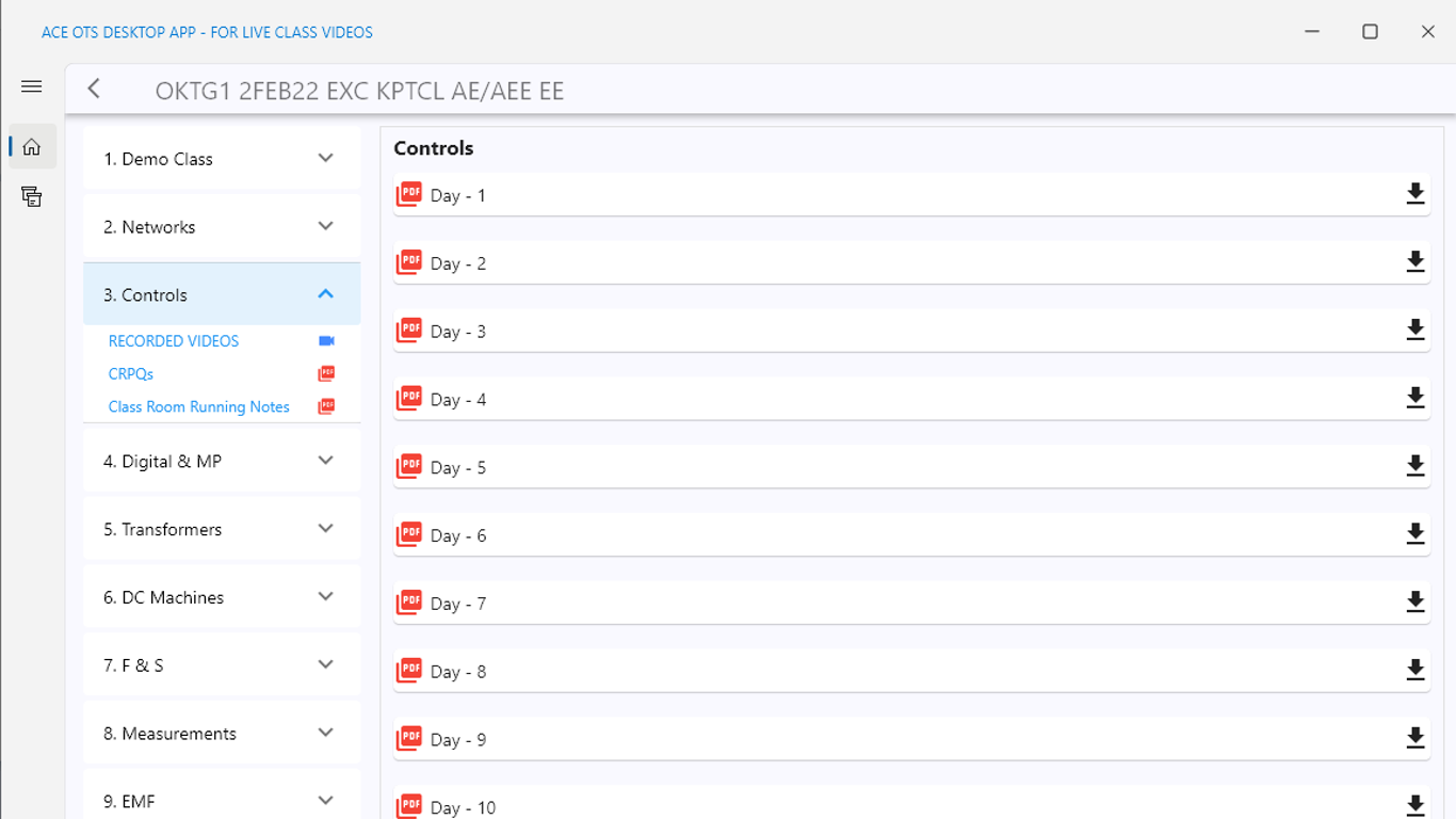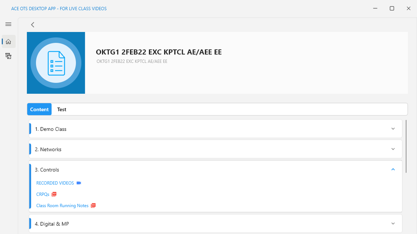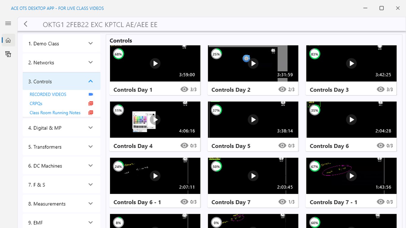 ACE OTS Desktop App provides access to video lectures recorded during the live class. Students can access the videos from any supported windows 10+ device (release 1809+).