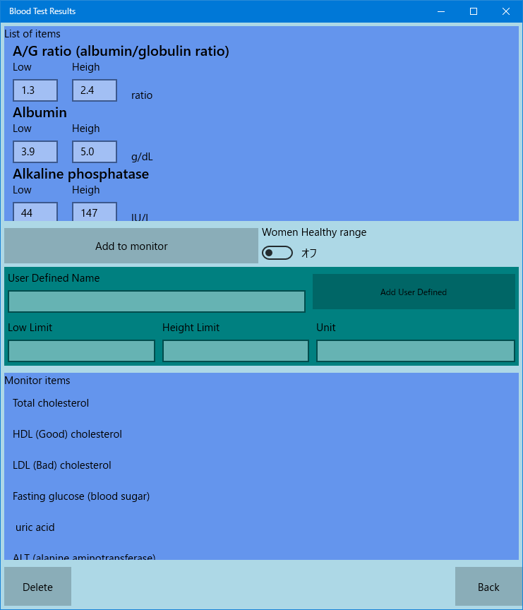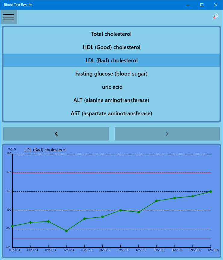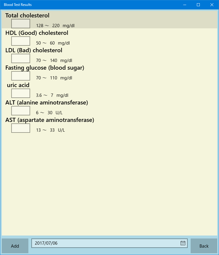 This app records blood test results and displays charts to make it easier to compare past data.