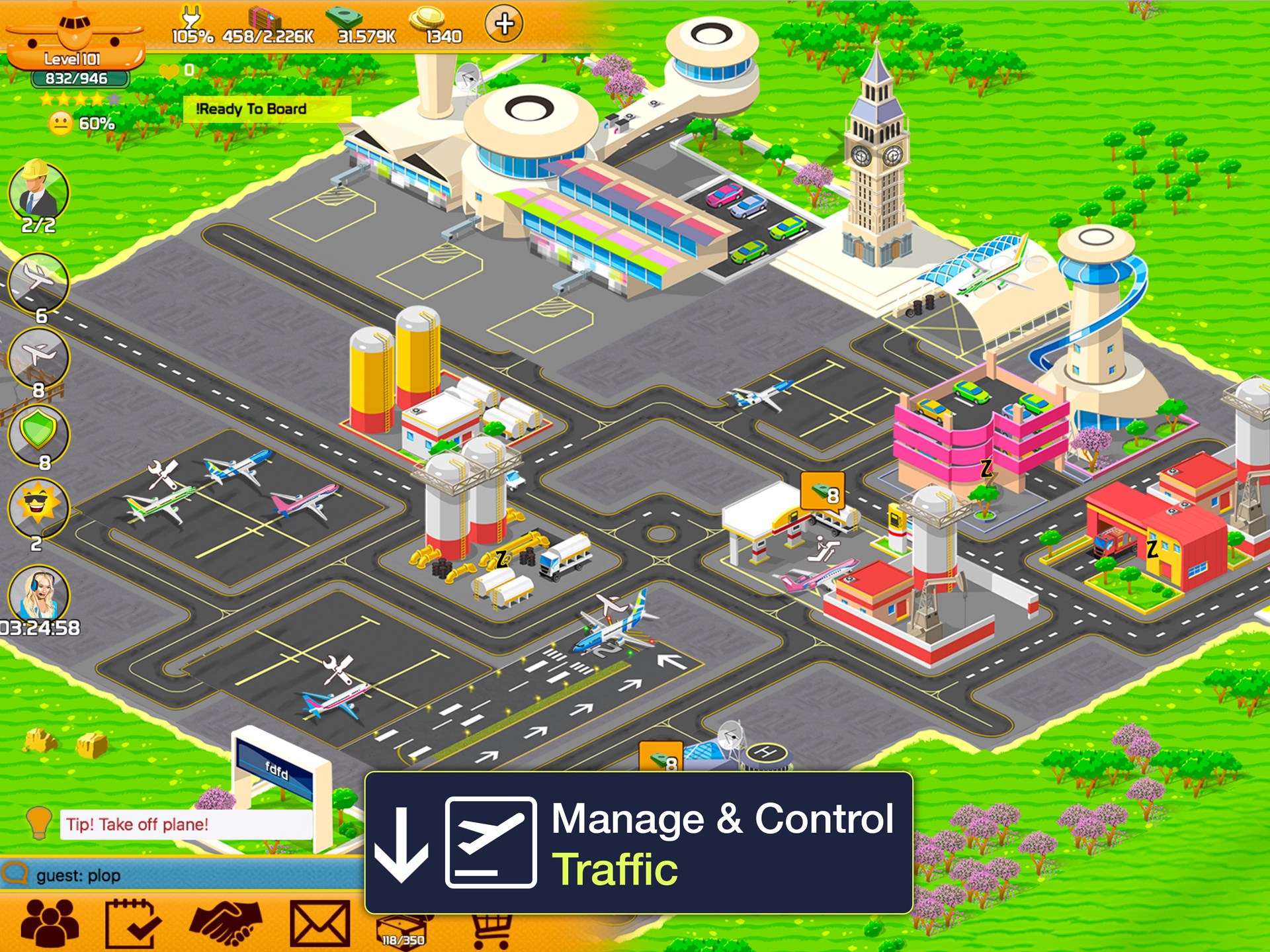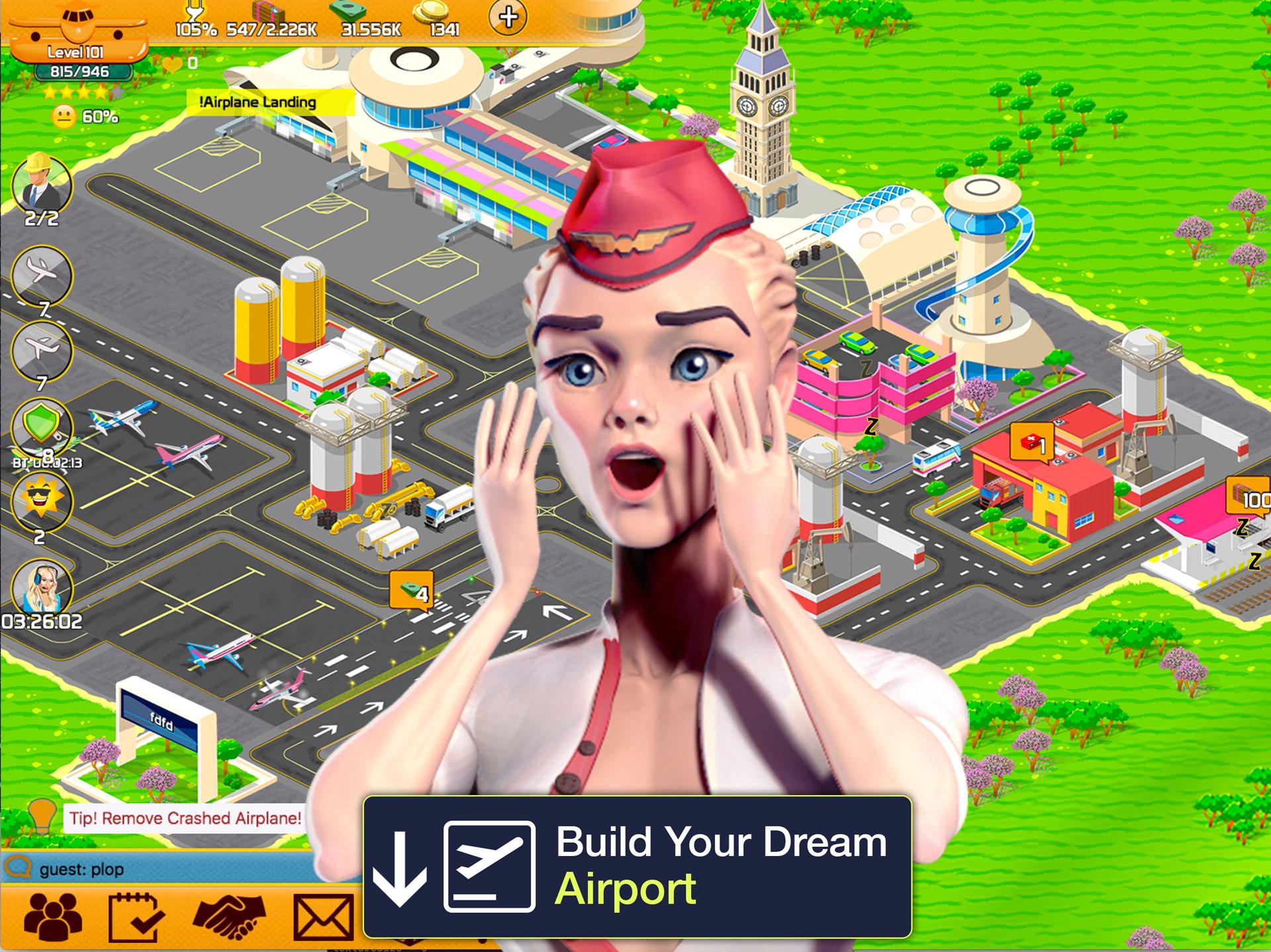 Upgrade buildings to impress the board of directors and earn rewards. Expand your airport to get more Airlines on your airport thereby earning you more money and prestige.