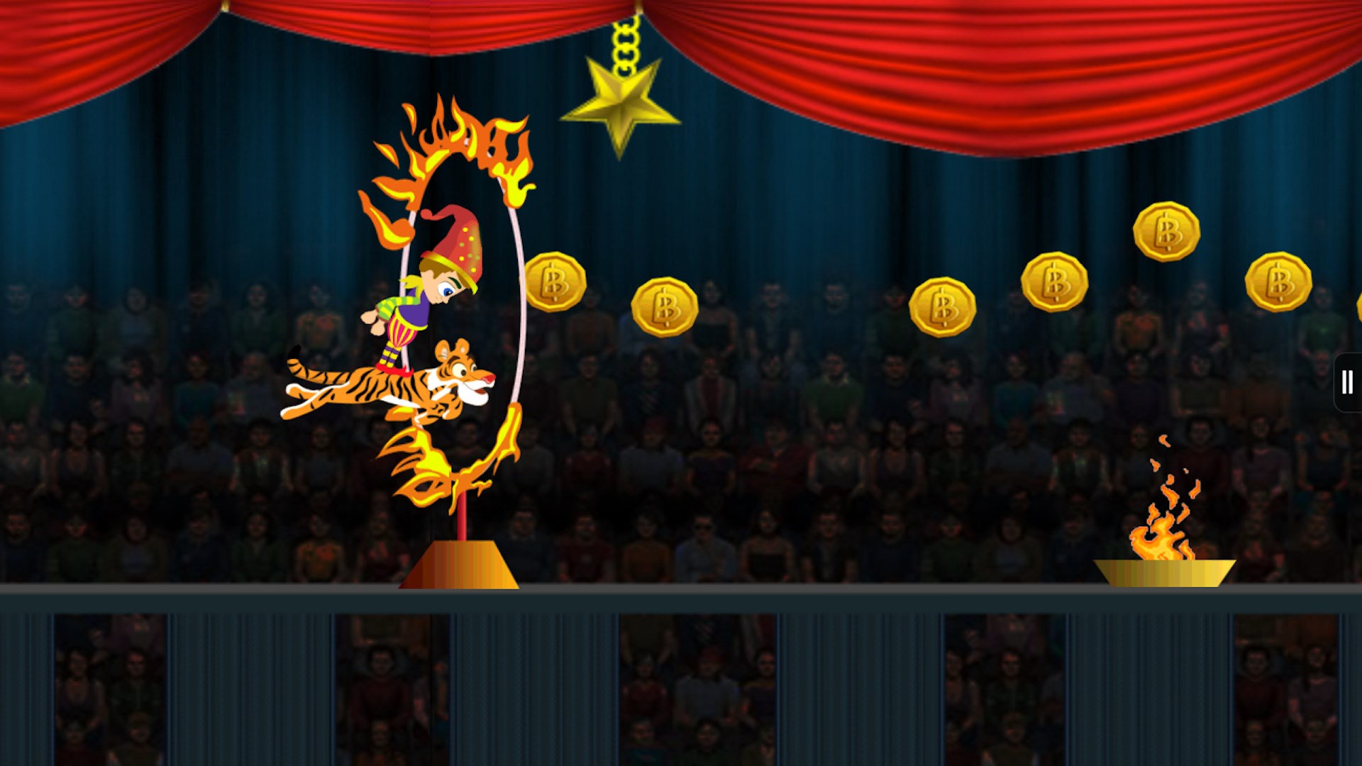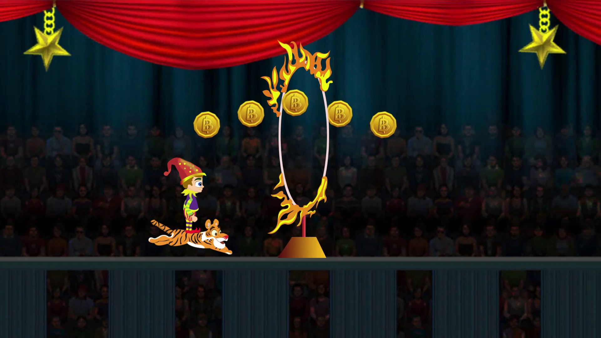 -Jump to earn coins and save yourself from fire rings and other obstacles.