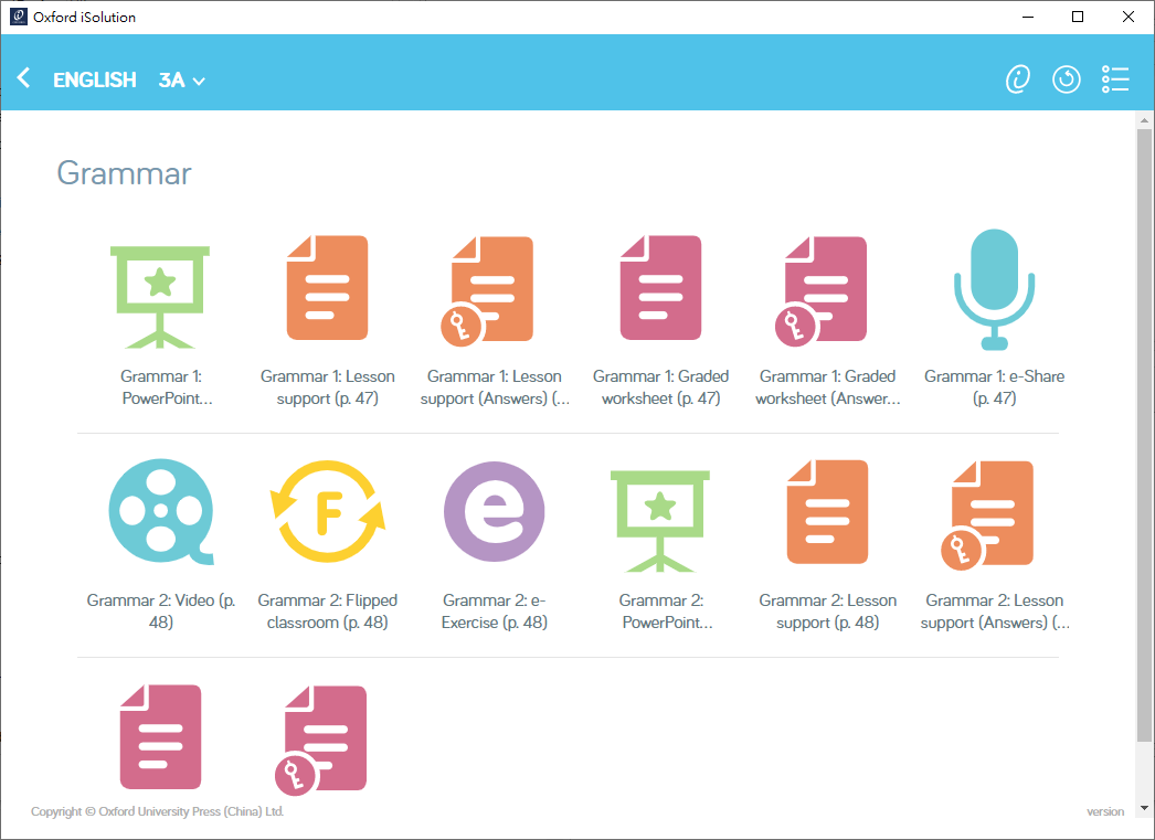Oxford iSolution is an all-in-one e-learning platform made available to teachers, students and home learners via a single app. Developed by Oxford University Press (China) Ltd., the platform provides users with easy and direct access to an array of e-learning resources, e-textbooks, interactive activities and assessment materials for school education and home learning. With cloud technologies, Oxford iSolution promotes mobile learning and enables users to learn anytime, anywhere with with their PCs or mobile tablets.