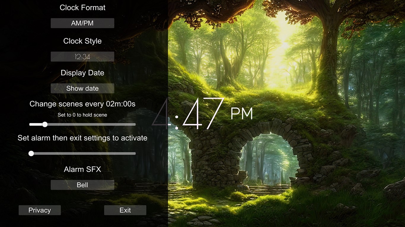 Peaceful Clock features over 60 stunning backdrops to go along with a selection of digital style clock faces.