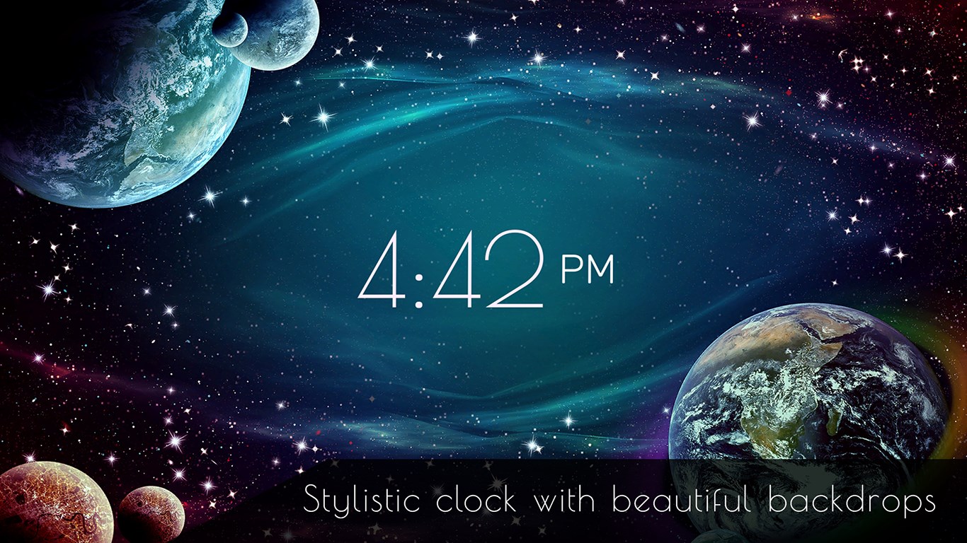 Stylistic digital clocksBeautiful backdropsCustom settingsSet an alarm