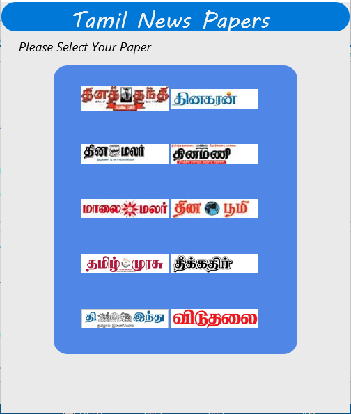 Tamil News Paper is your single app to access to all Tamil News Papers like Dinamalar, Dinathanthi, Puthiya Thalaimurai etc