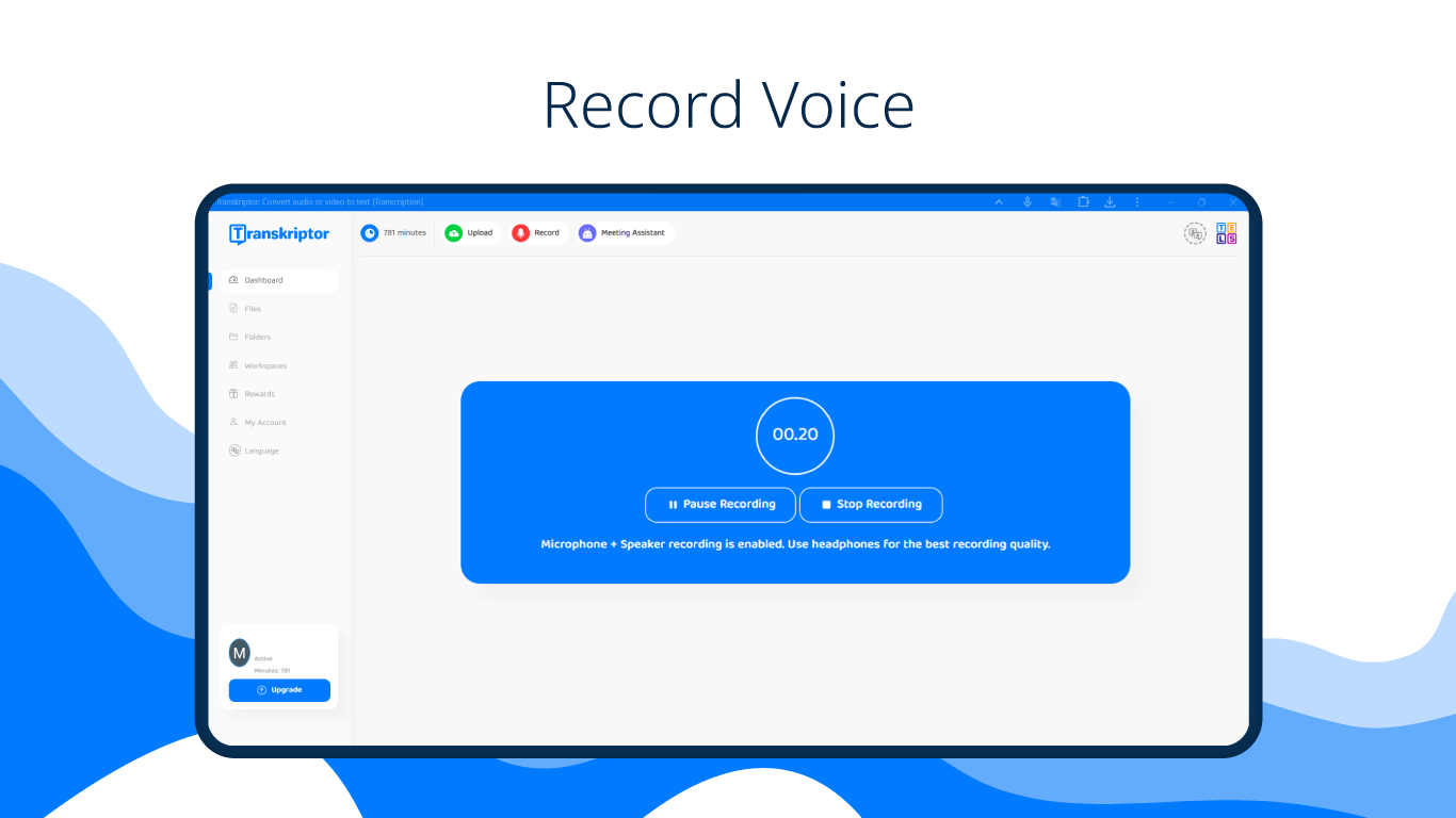 Convert voice to text via transcription app. Transcribe meeting & audio to text