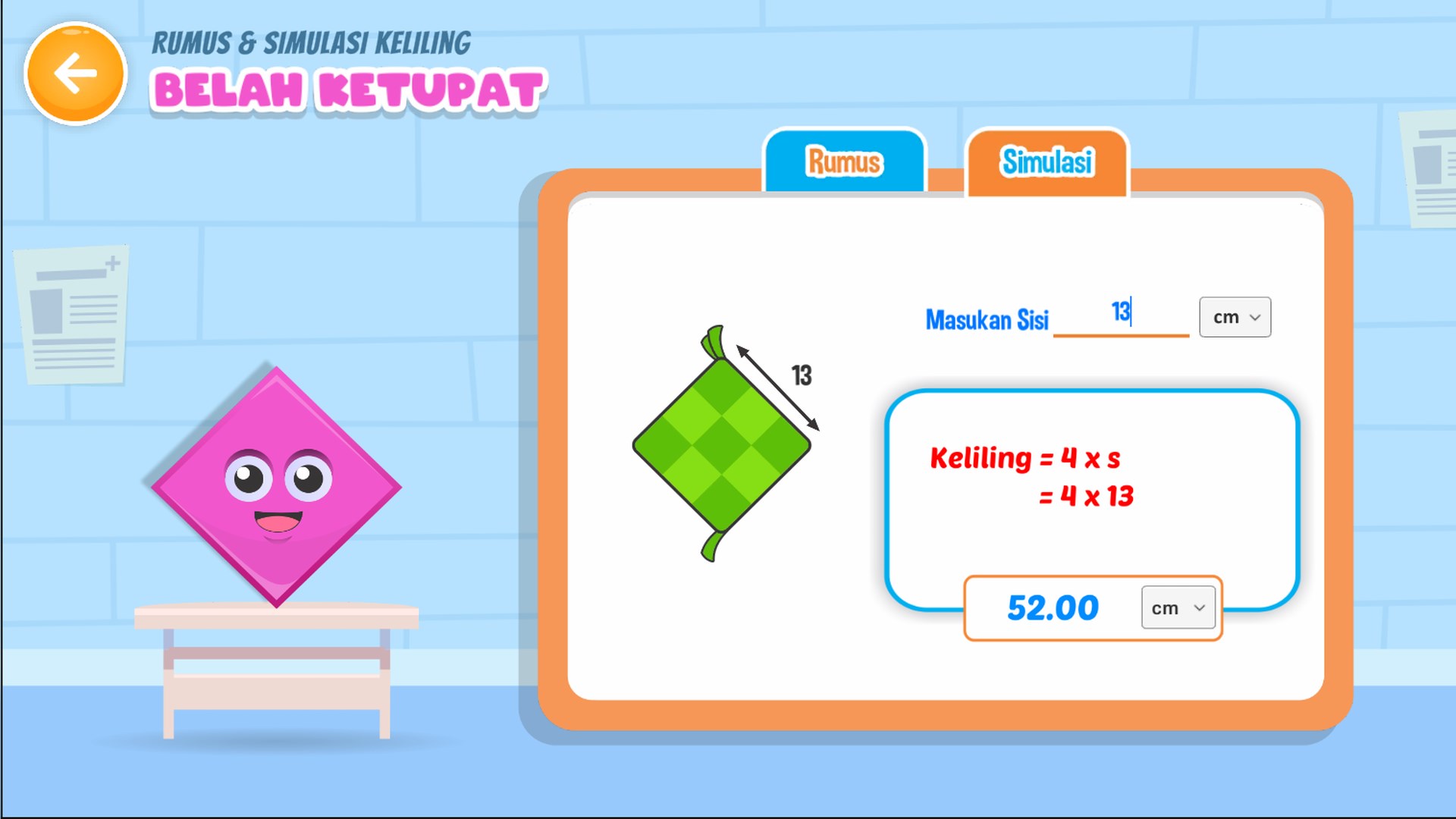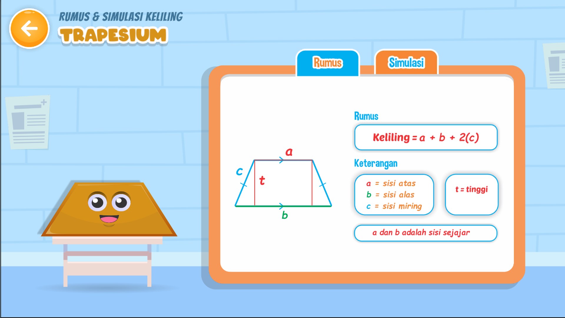 Aplikasi Belajar Menghitung Luas dan Keliling Bangun Datar Segiempat Matematika. Berisi Rumus-rumus dan juga simulasi hitung bangun datar segiempat. Aplikasi segiempat adalah aplikasi yang sangat cocok bagi anak-anak SMP (usia 10-15). Simulasi hitung disajikan dengan menarik dan ringkas, sehingga dapat membantu untuk menghitung luas dan keliling bangun datar segiempat matematika. Didalam aplikasi terdapat 6 macam materi bangun datar segiempat: