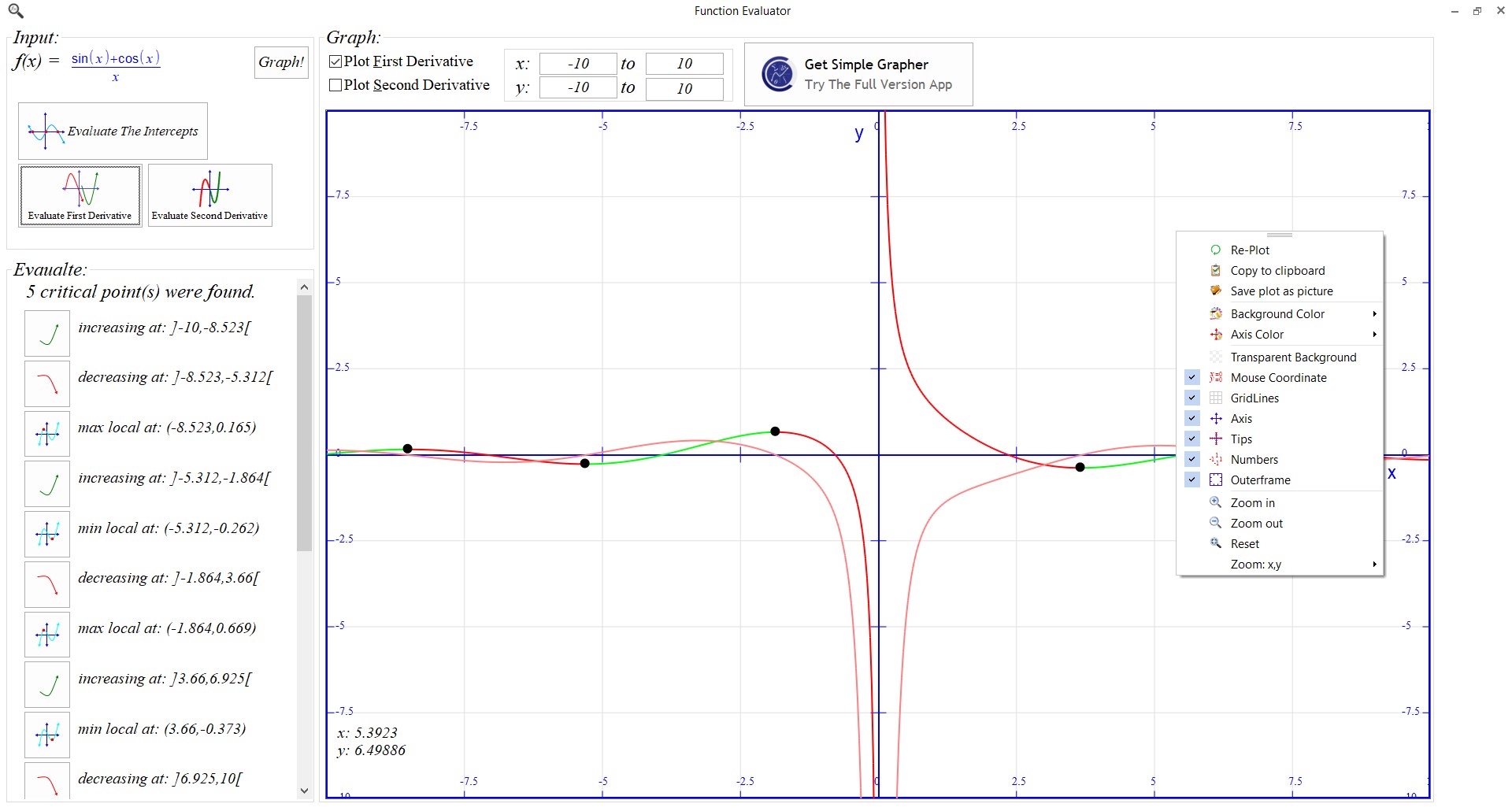 With this app, you can easily analyze your input function with just one click and also provide a beautiful graph!