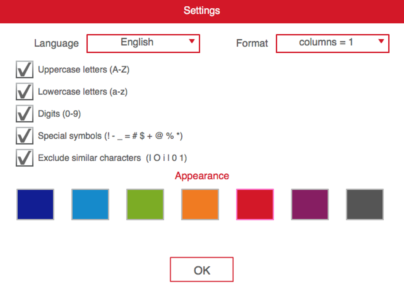 - You can optionally exclude similar characters.