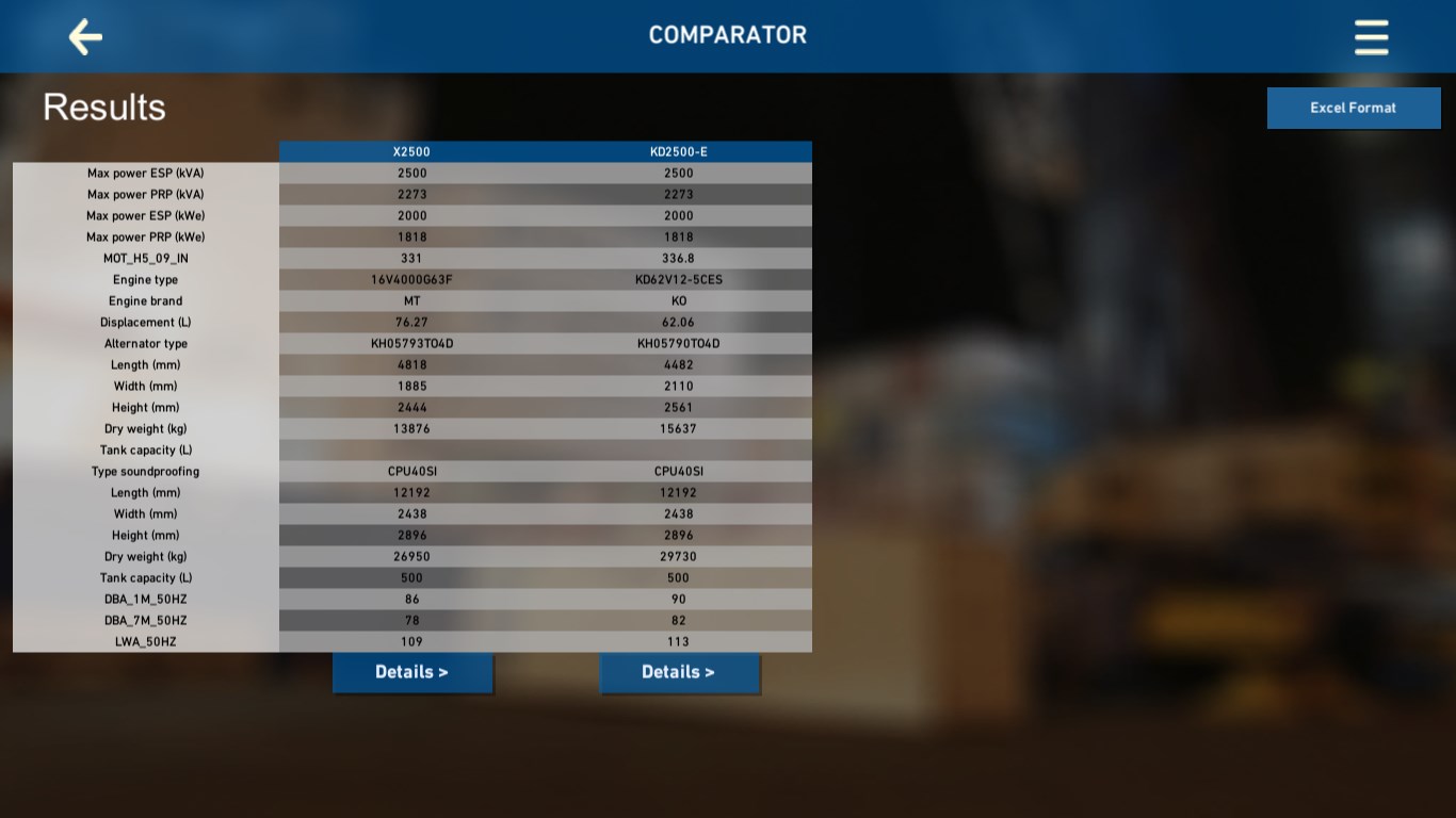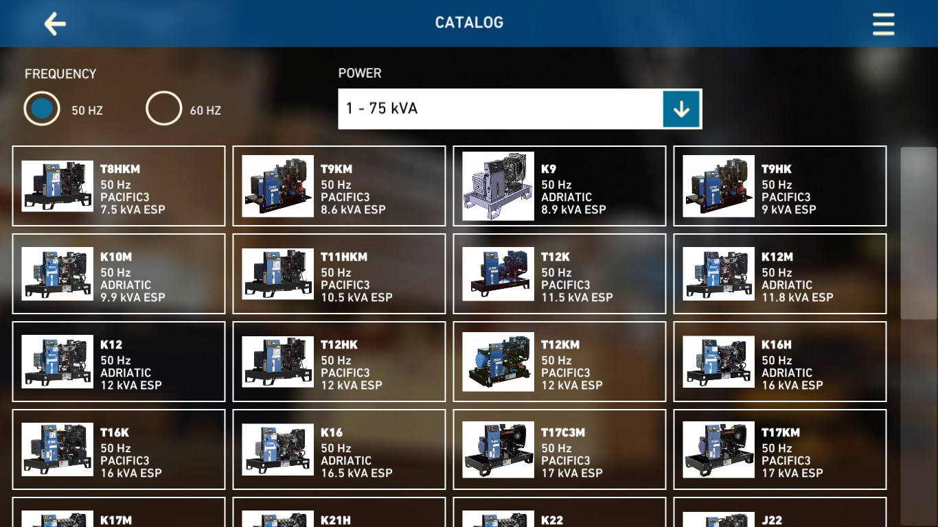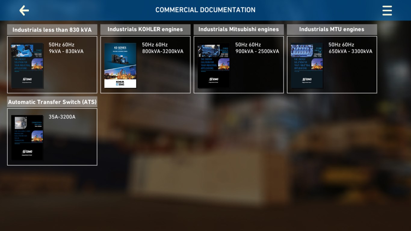 Via its application, KOHLER-SDMO puts at your disposal the information for all its industrial generators. Connected or not, you will have access to all our brochures, the datasheets and to a tool which compares generators’ technical data. You will also be able to send these information by email to anyone you choose. We offer you a “KOHLER-SDMO contact” section and our distributors’ list. Our application will evolve with time; please feel free to share your comments about it.