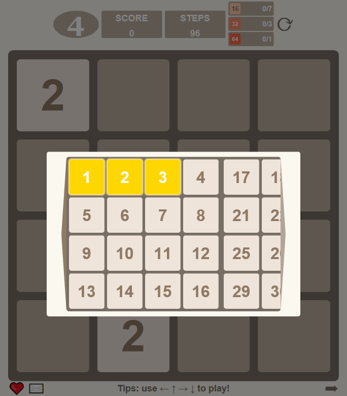 Just keep sliding the sliders to merge them, 2 + 2 → 4, 8 + 8 → 16 ... 32 ... 256 ... 1024 ..., when the 2048 is generated, it reaches the peak of life. But this is not the end!