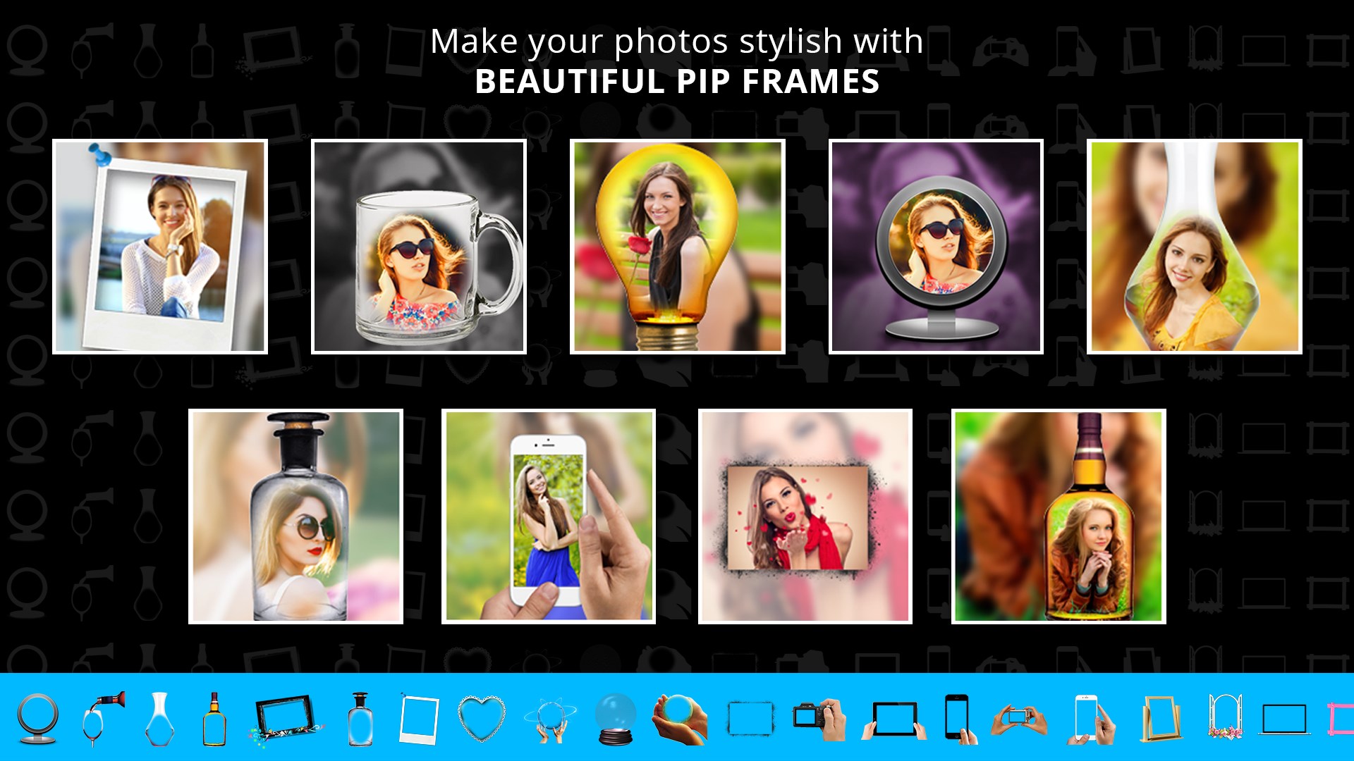 Stand out from the crowd by uploading amazing pictures created by PIP Camera - Creative Photo Frames & Photo Editor on social media. Get More Likes!!!