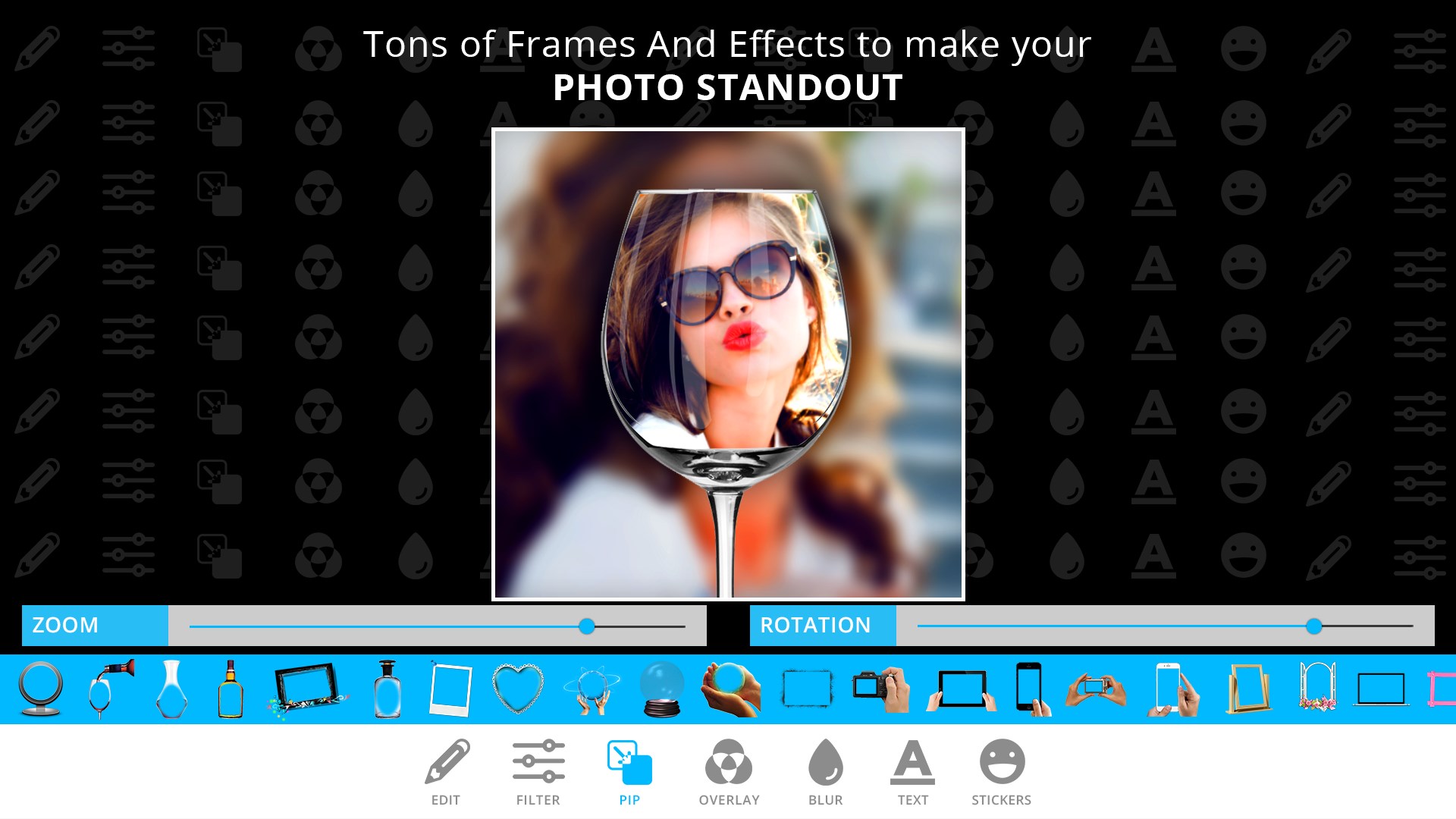 PIP Camera - Creative Photo Frames & Photo Editor is a pic-in-pic (Picture In Picture) maker with powerful photo overlays, amazing Filter Effects and cute stickers.