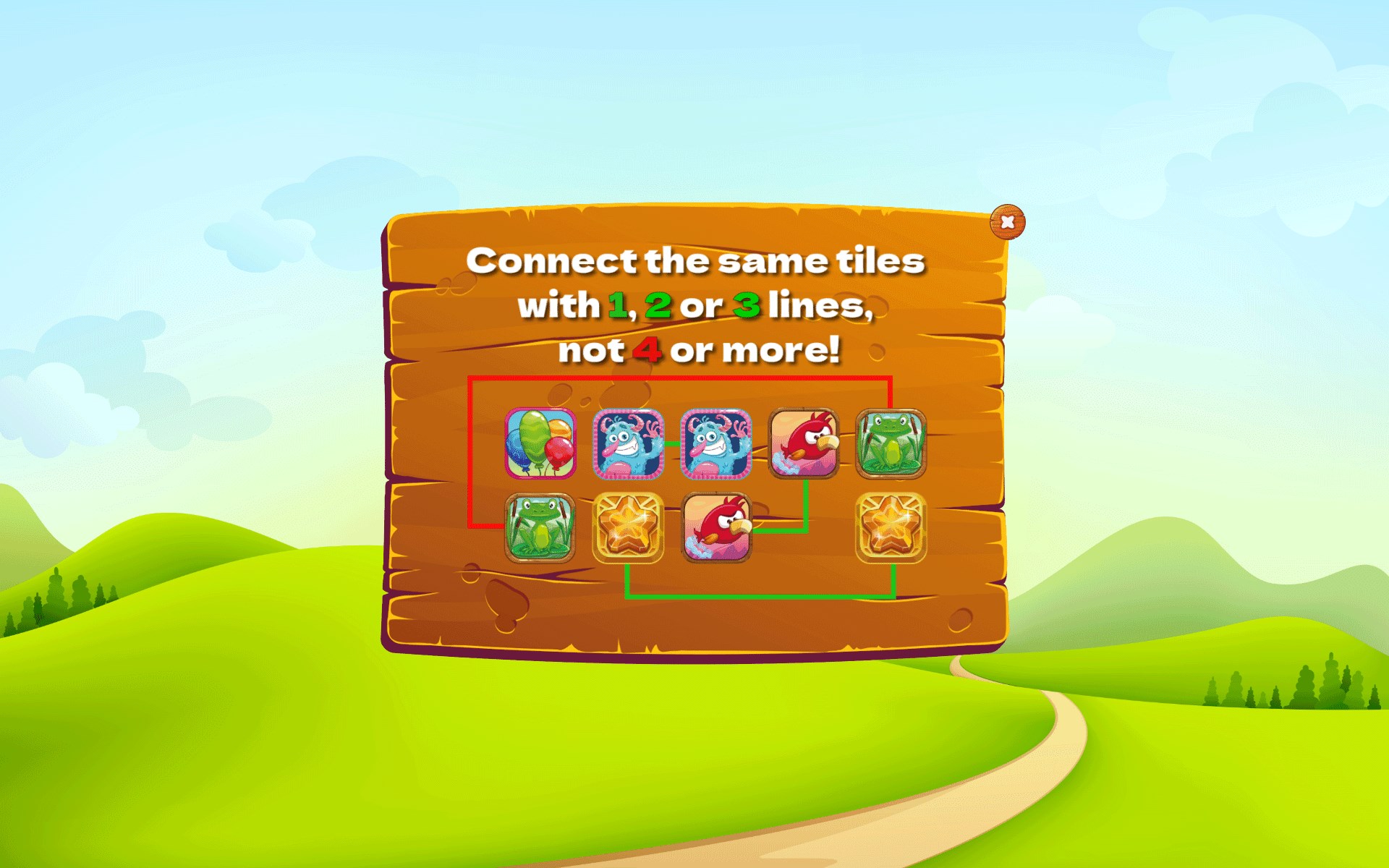 Onet Connect is the very well-known addictive connect lines game. Tiles must be connected with up to 3 straight lines where there is no other tile blocking the line path. Easy yet famous among all ages. Just relax your mind and have fun playing Onet Connect game. Enjoy this classic.