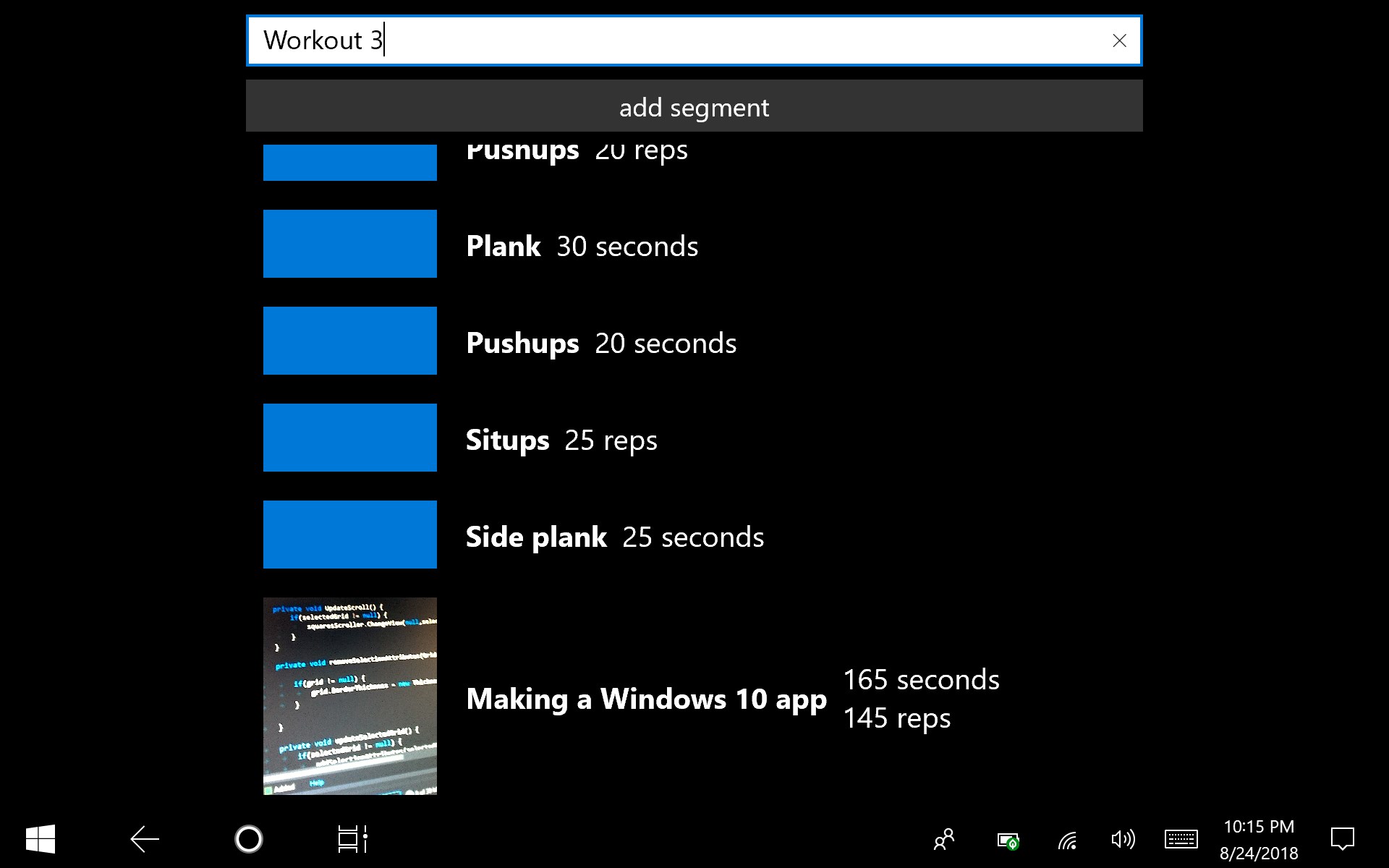 Import pictures, name your segments, add timers, and set reps. Keep with it allows you to create workouts one segment at a time and when you're all done creating or importing your new, workout masterpiece, it's time for you to try it out.