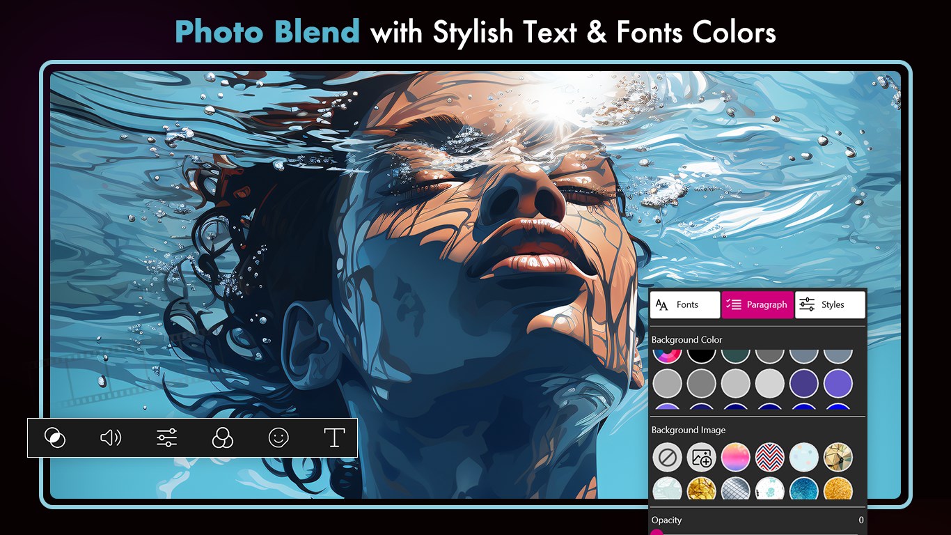 Tell your story or convey a message by adding text to your blended images. Customize fonts, sizes, colors, and placement to create eye-catching captions, quotes, or titles.