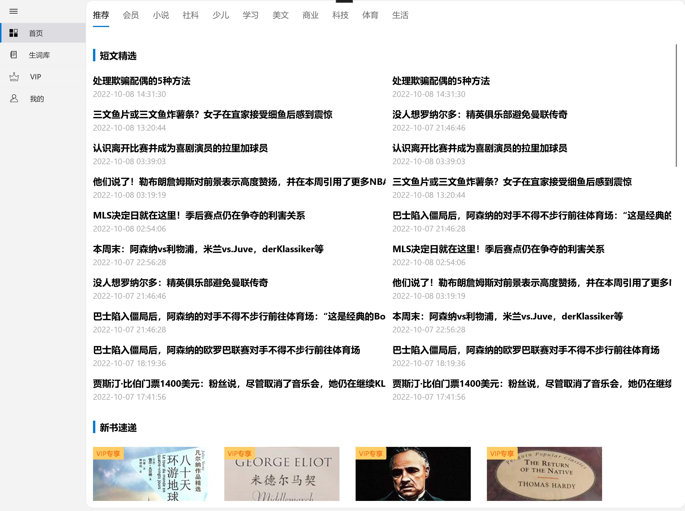 1、海量内容:上百本双语图书,数十万篇双语短文;