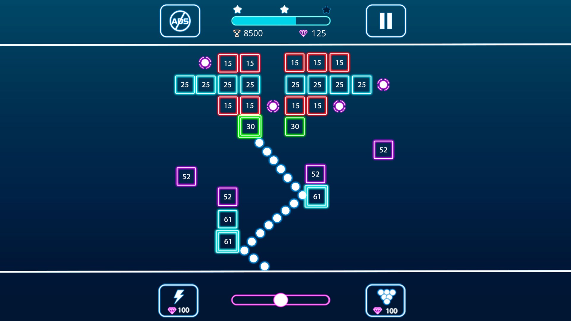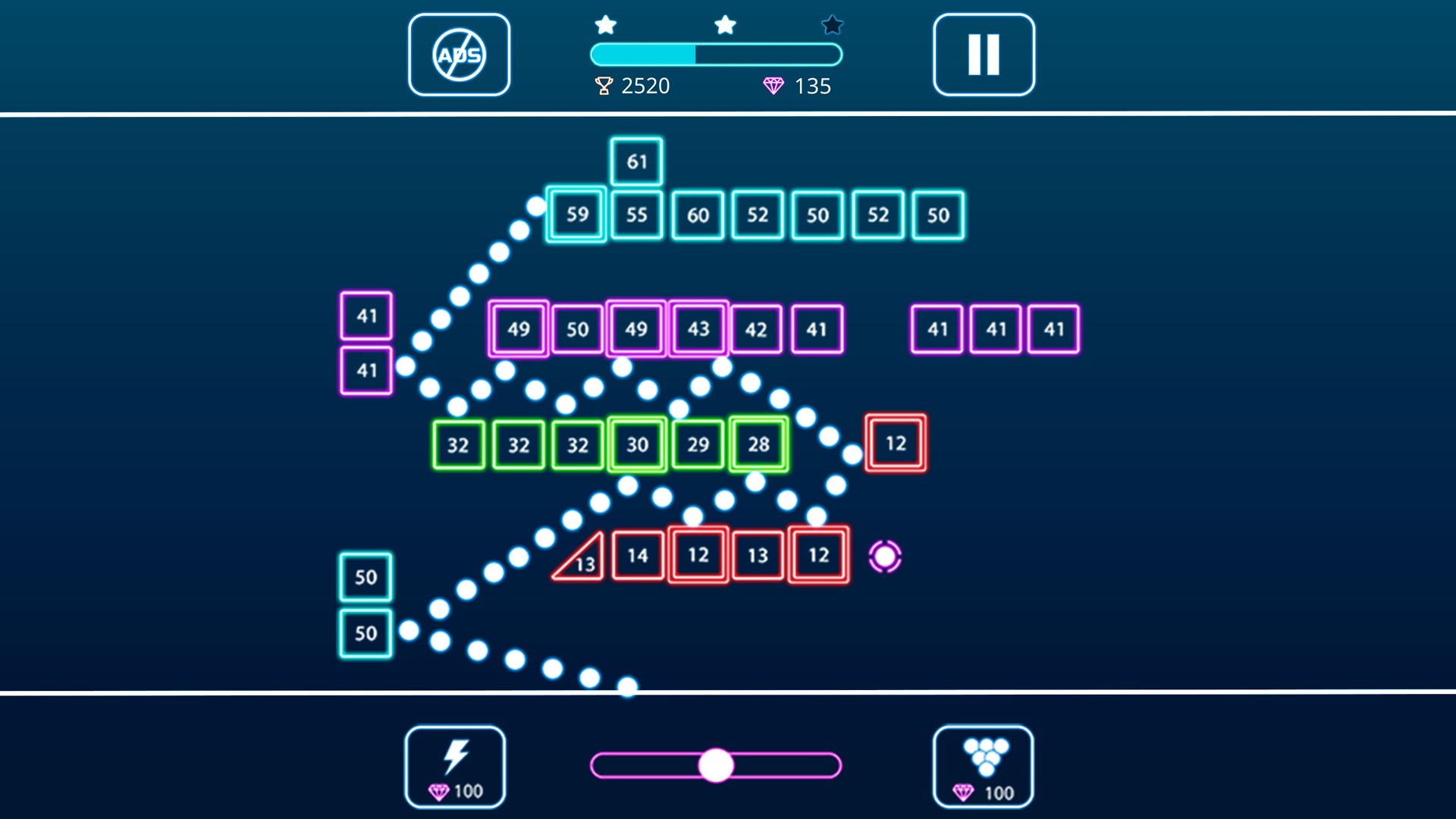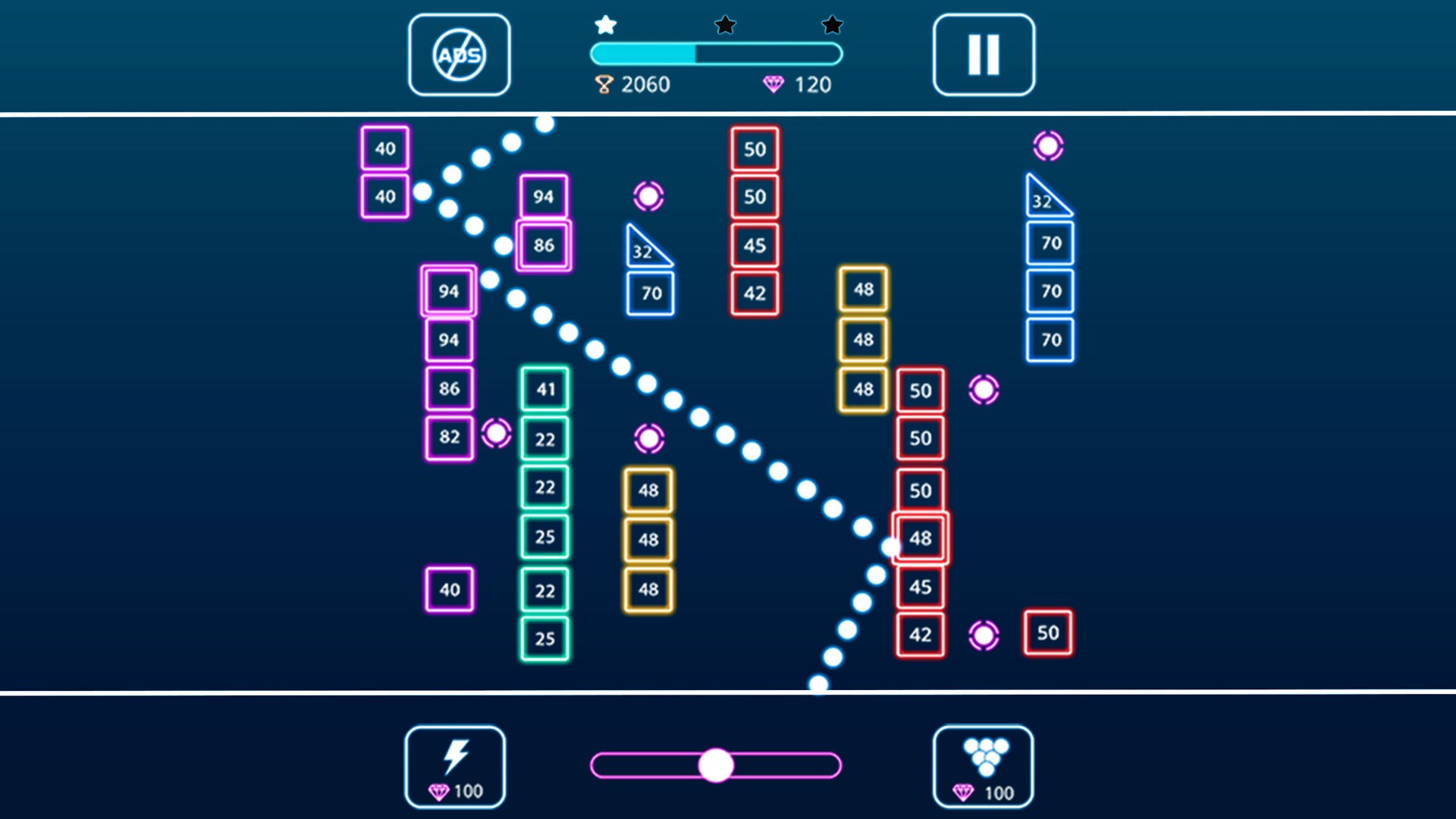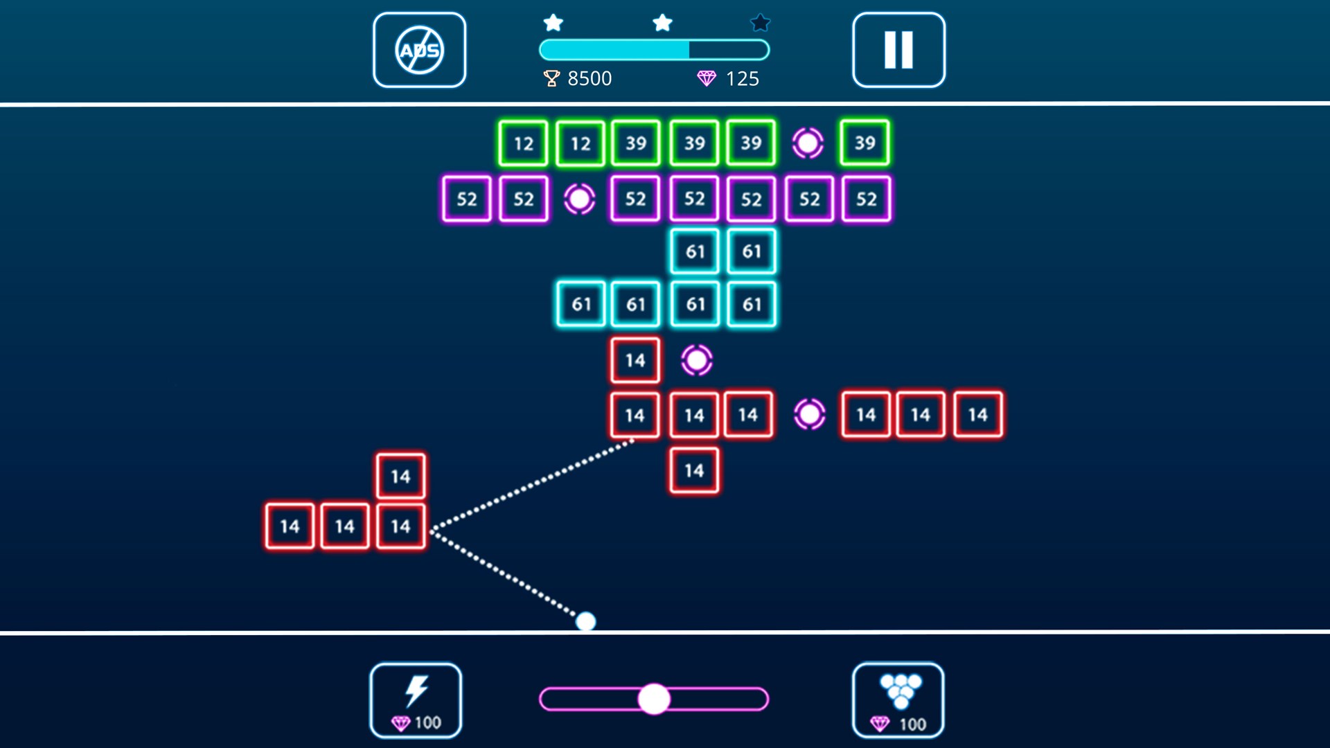 Touch and shoot balls to break all bricks. You must clear all bricks to finish each level. Find the best aim angle to break a maximum of bricks.