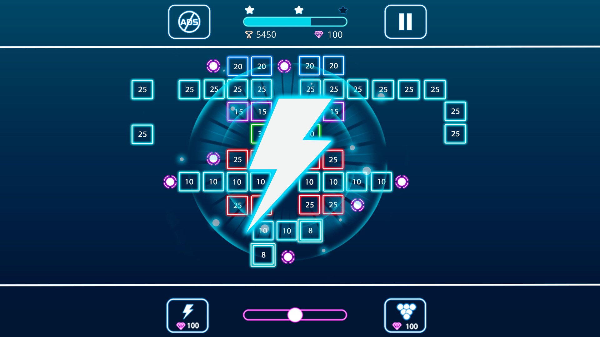 - Clear the stages by removing bricks on the board.