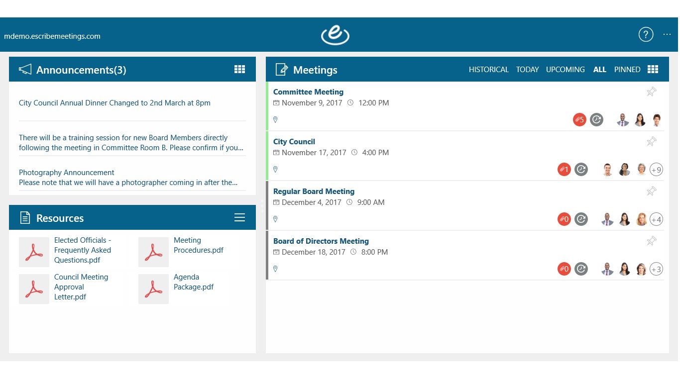 eSCRIBE Meetings is a dedicated Windows application designed to provide board members and meeting participants with real-time access to eSCRIBE meeting sites.