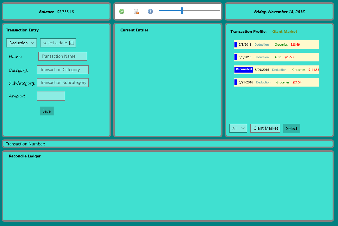 jMoneyIII is an electronic ledger that provides functionality associated with maintaining a transaction database for a small organization, or for personal use.