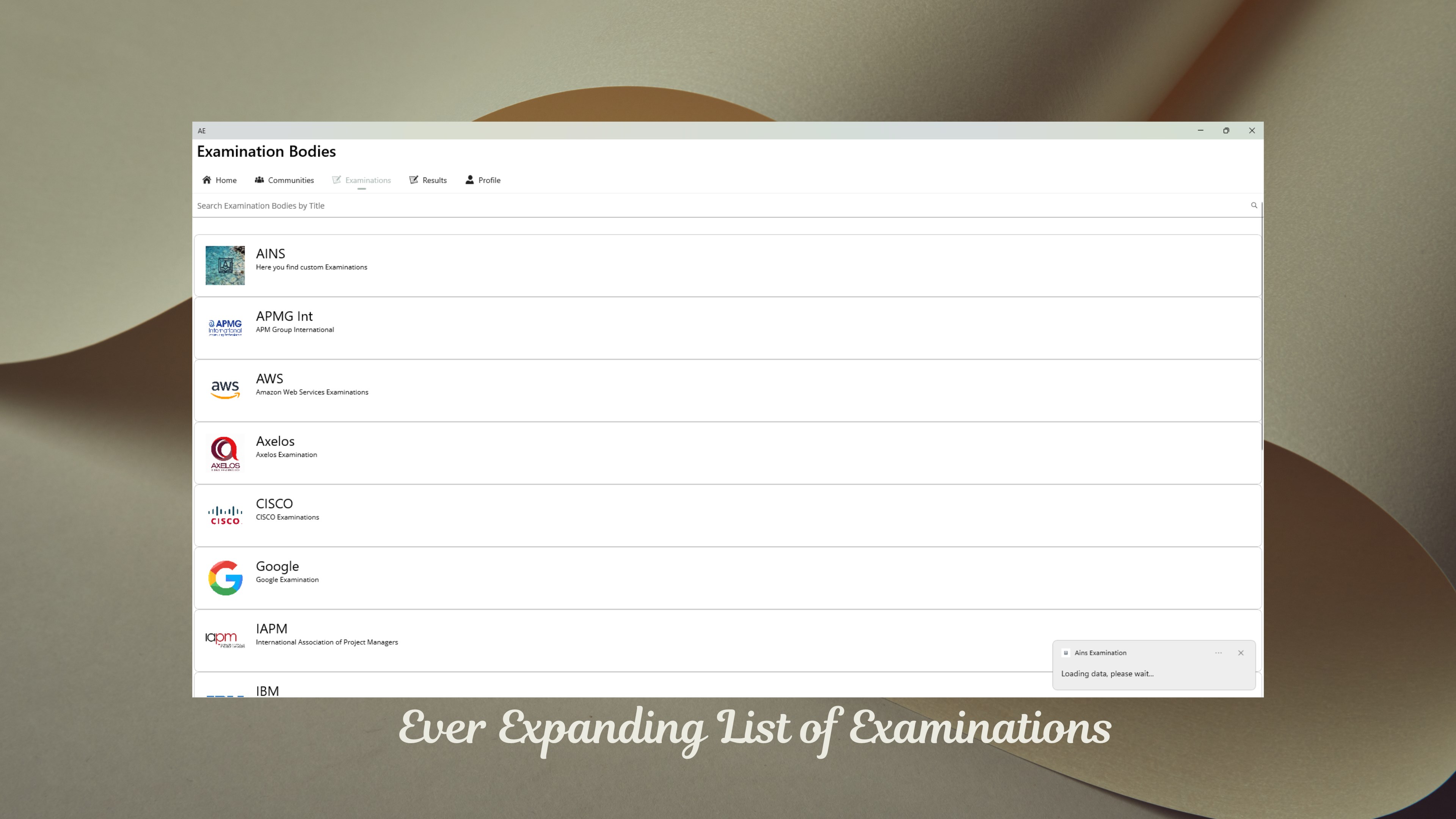 Ains Examination is a cross-platform application allowing users to take practice or mock examinations.