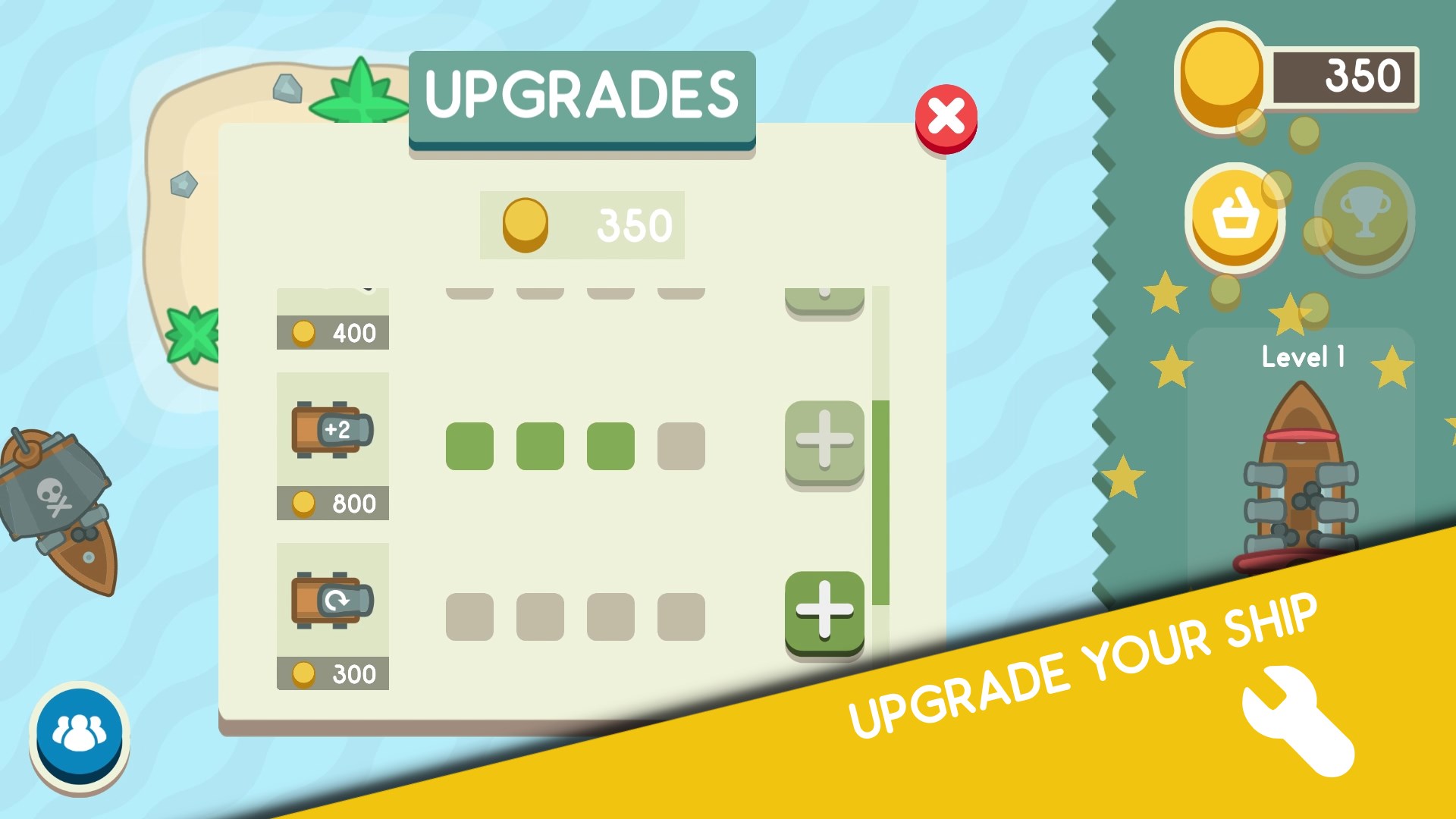 - Upgrade your ship, get more canons, make it faster, and much more