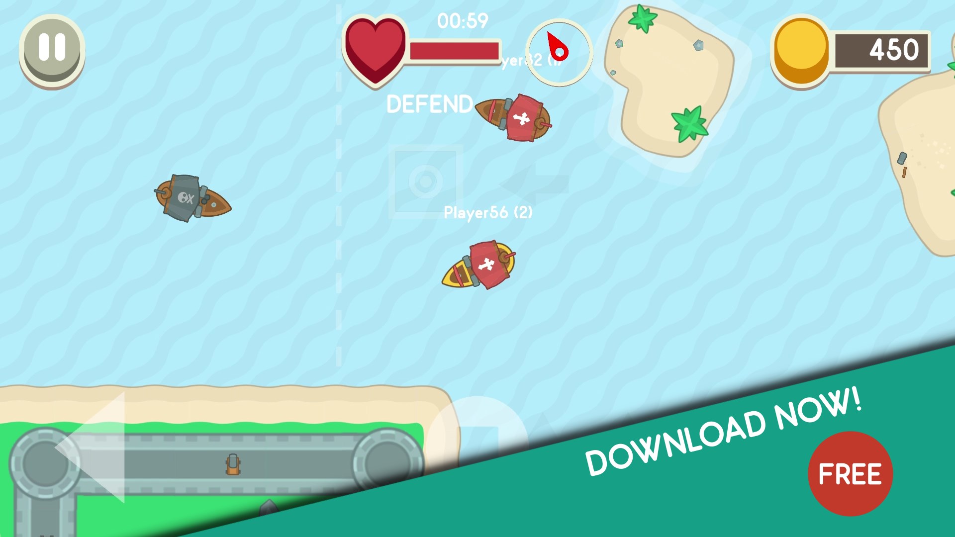 Sink Me! is a simple, fast paced and addictive 2D multiplayer pirate game. In Sink Me! you need to navigate your ship through multiplayer matches, help your team by destroying enemy ships or bring the treasure into the base. Download now and join the battles, fight against pirates and other players.