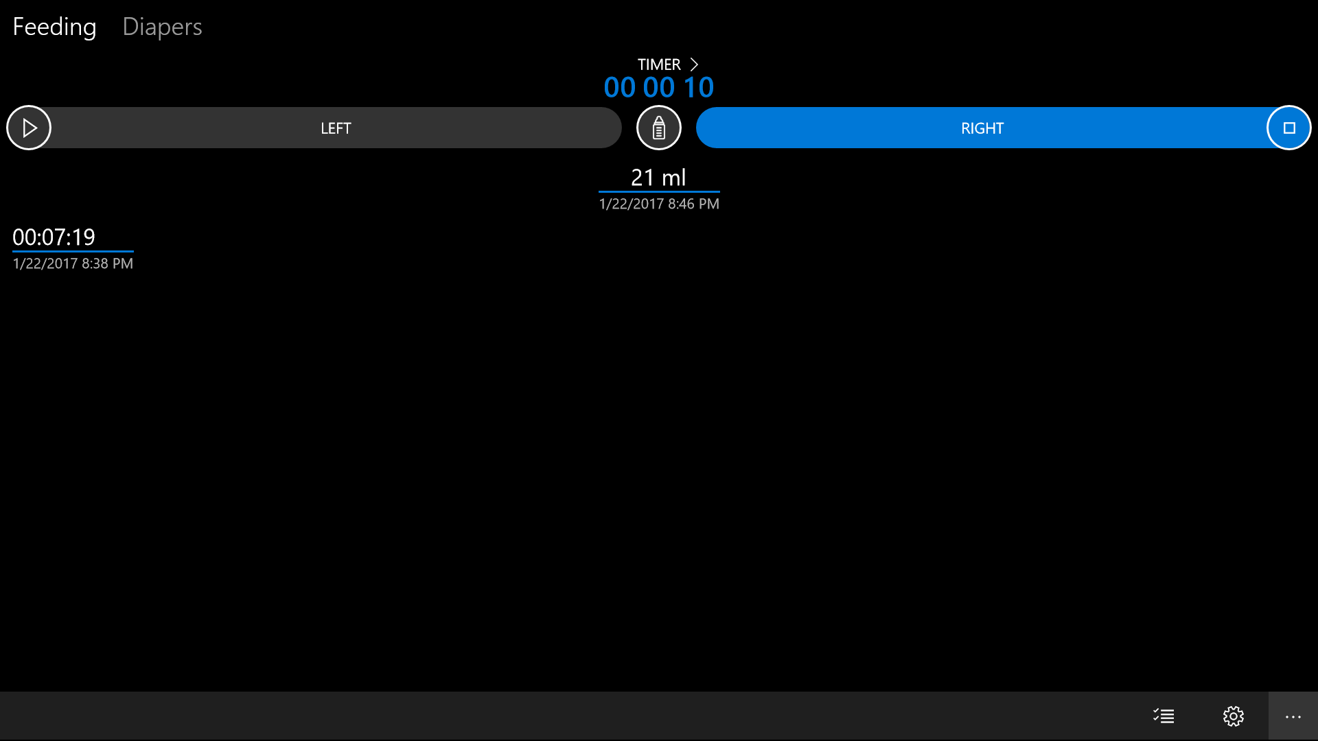 Track which side was used and for how longTrack how much and when a baby has fed from a bottleTrack when and what type of a diaper changes your child had