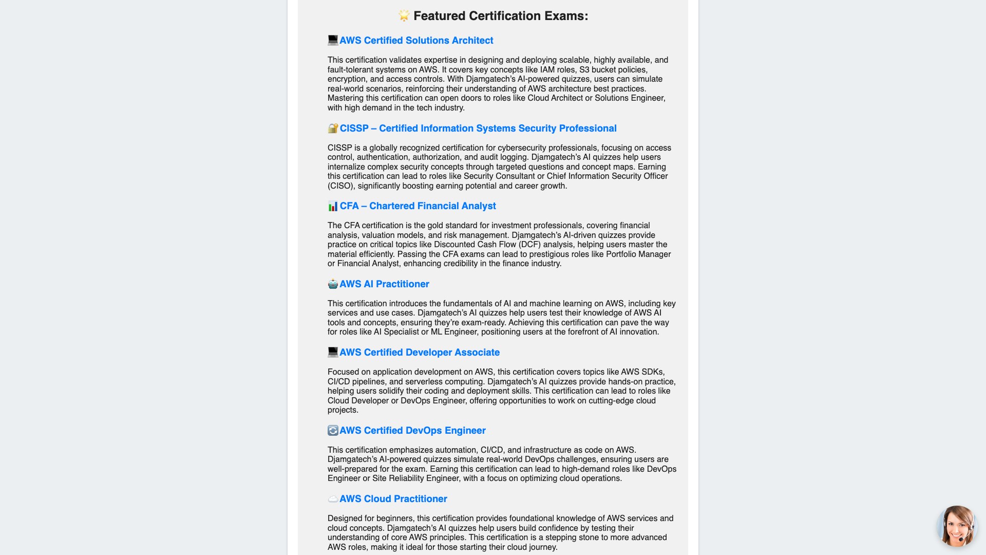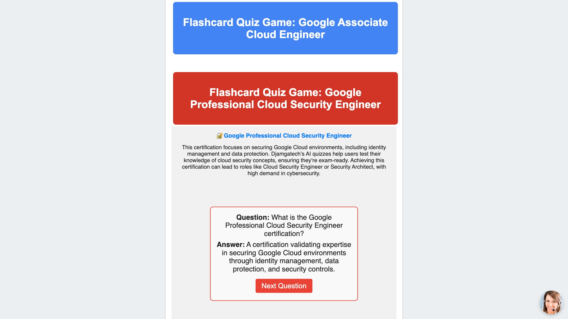 Below is a description of some certifications quiz and flashcards and practice exams included in the Djamgatech App: