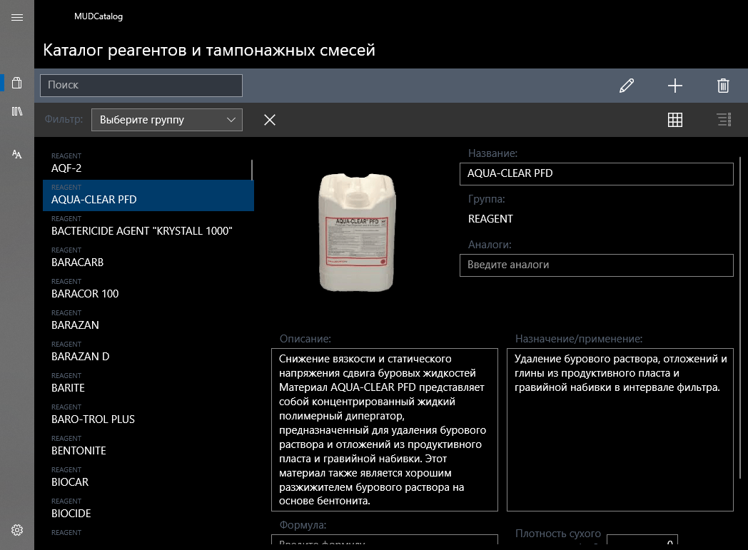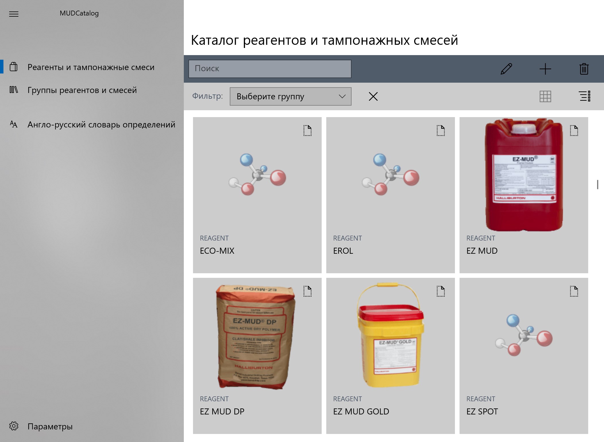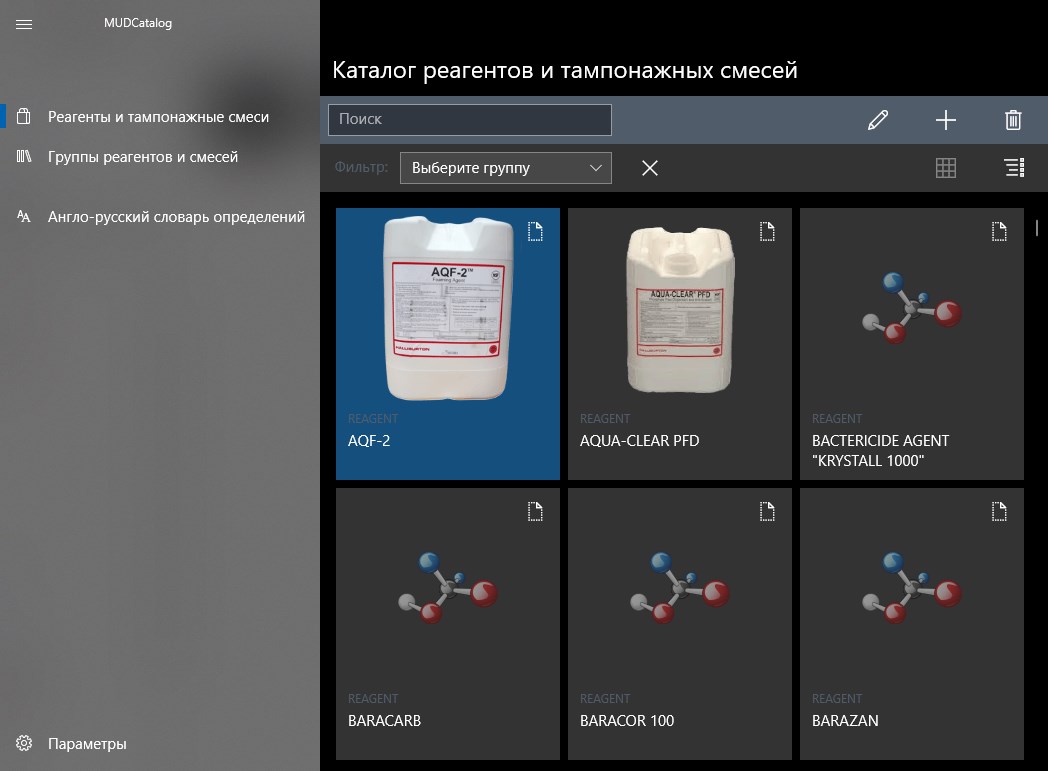 Catalog of chemical reagents, substances, materials and grouting cements for drilling and fixing oil and gas wells.