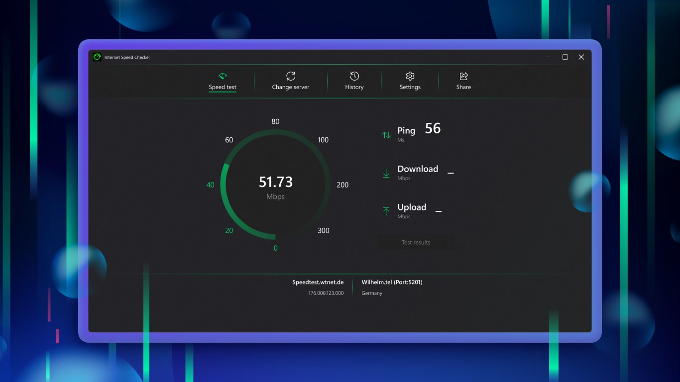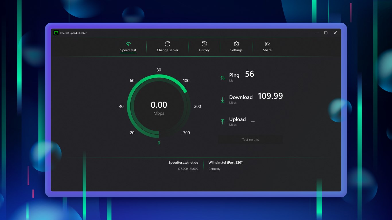 Internet Speed Checker measures the connection speed and quality of your connected device to the internet.