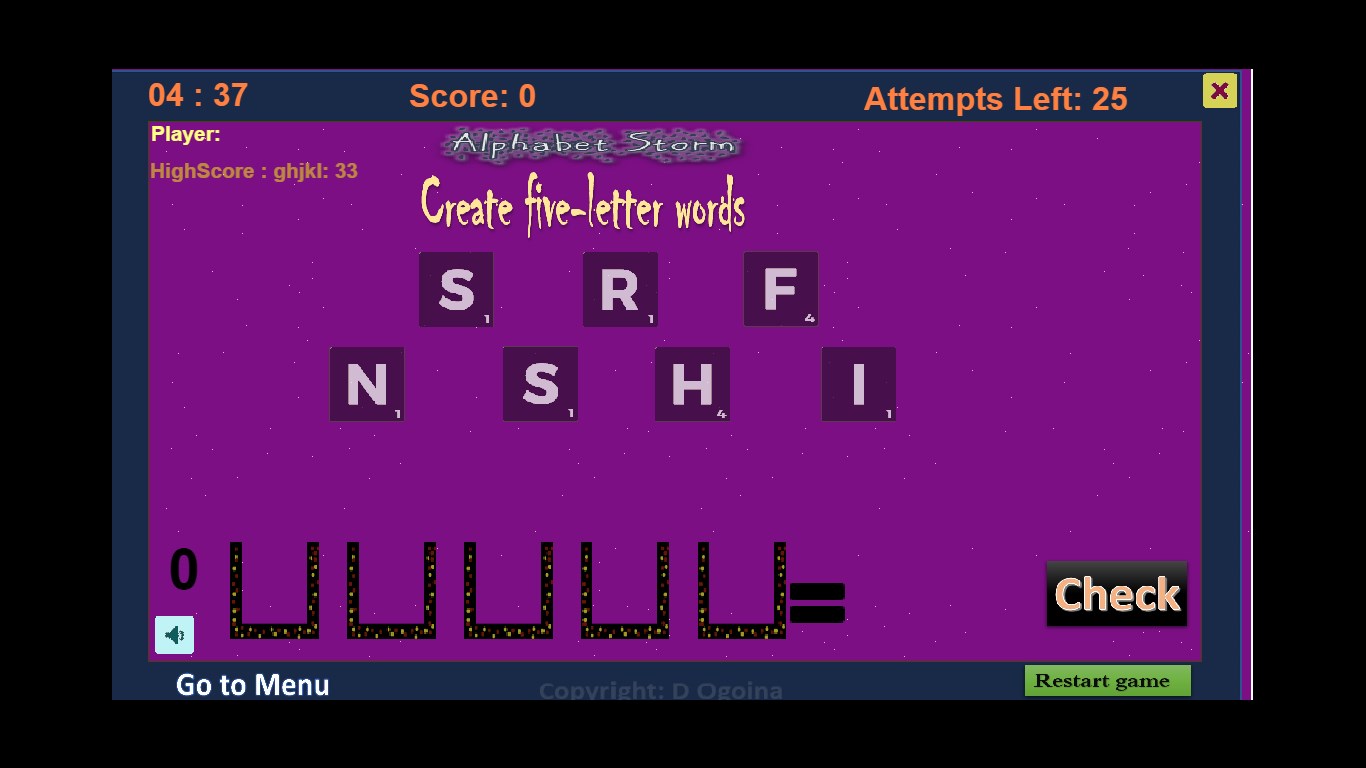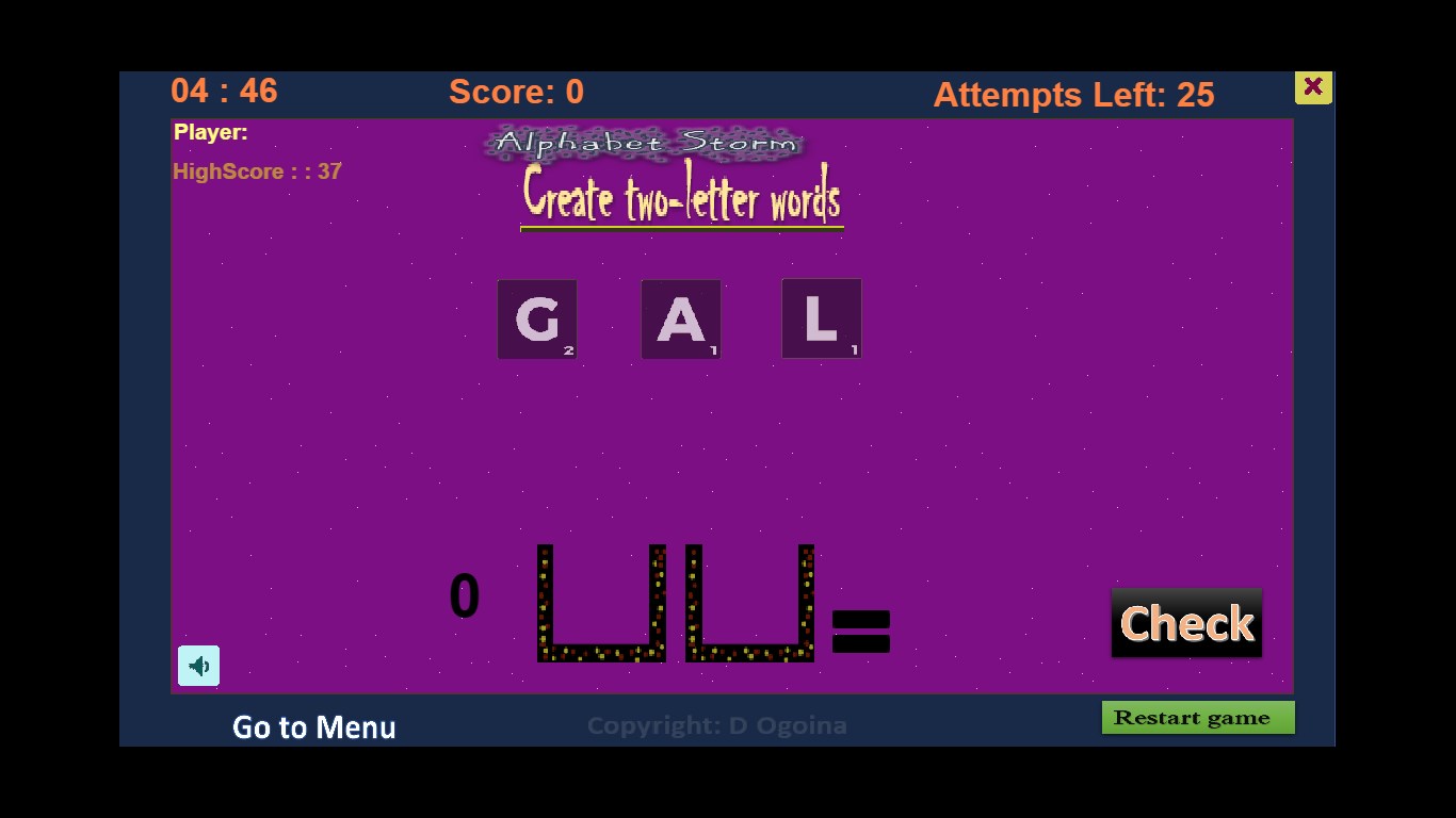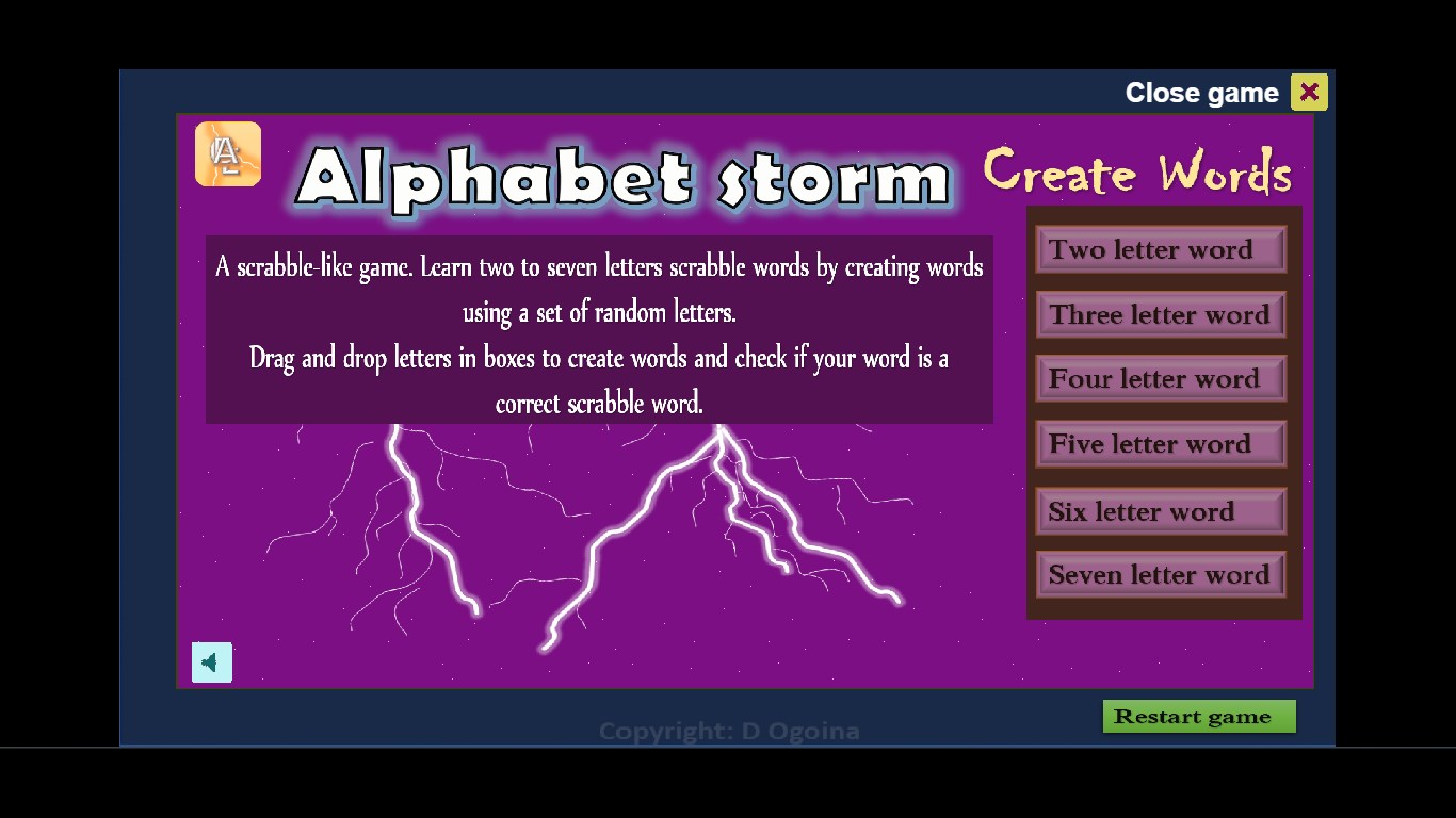 A scrabble-like game. Learn two to seven letters scrabble words by creating words using a set of random letters. Drag and drop letters in boxes to create words and check if your word is a correct scrabble word