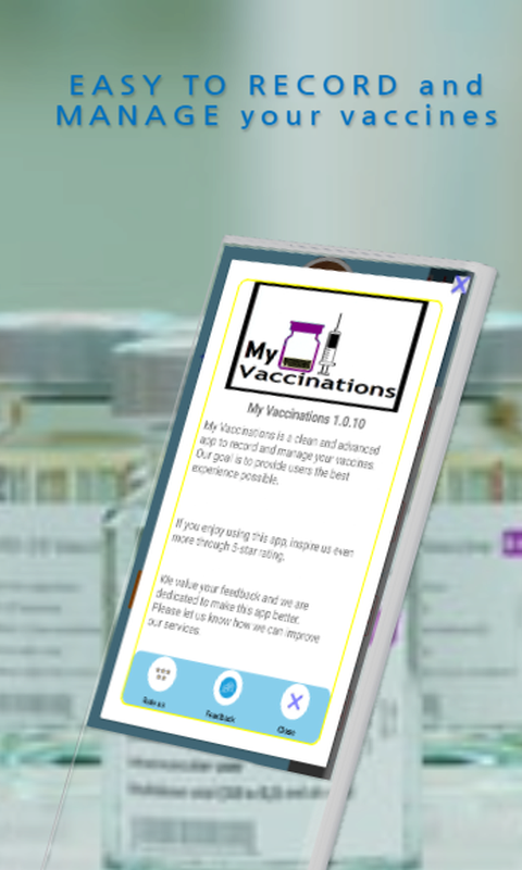 My Vaccinations app is employed as a record for all vaccines you have got received since your birth. This app stores any vaccine on your device (phone, tablet or PC) in a simple and modern way.