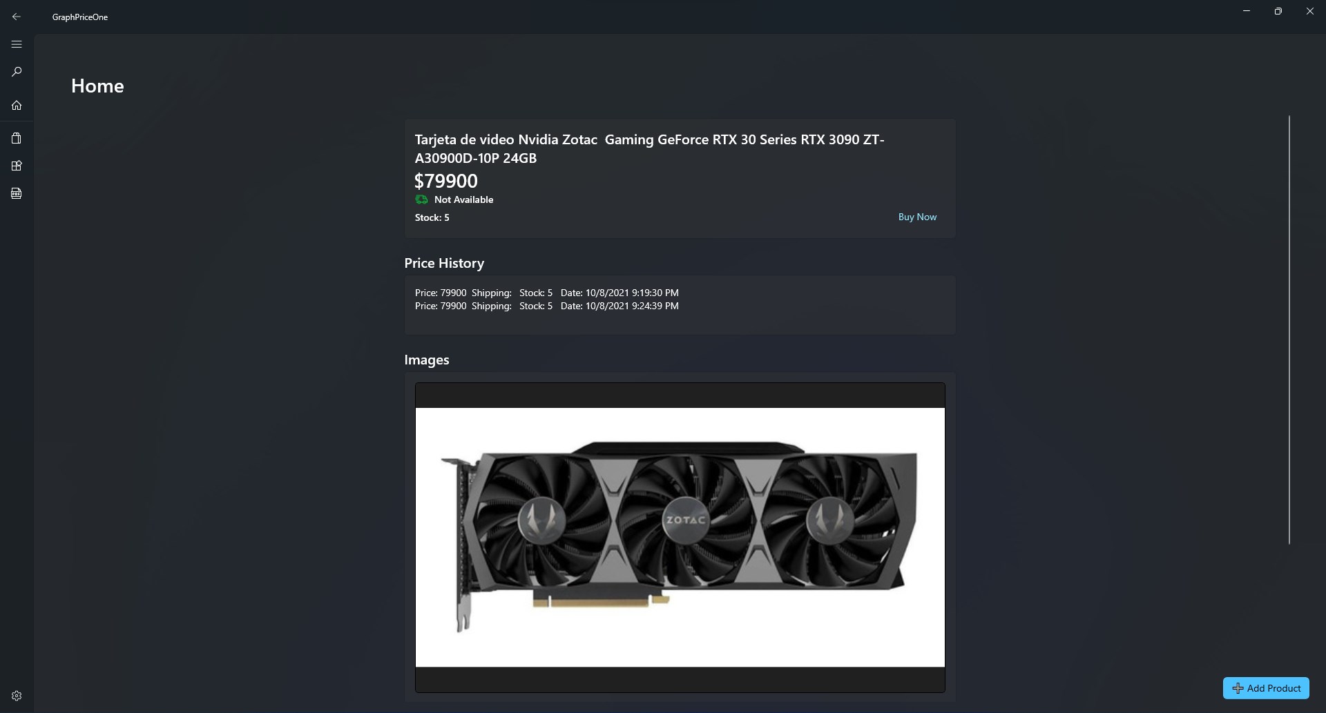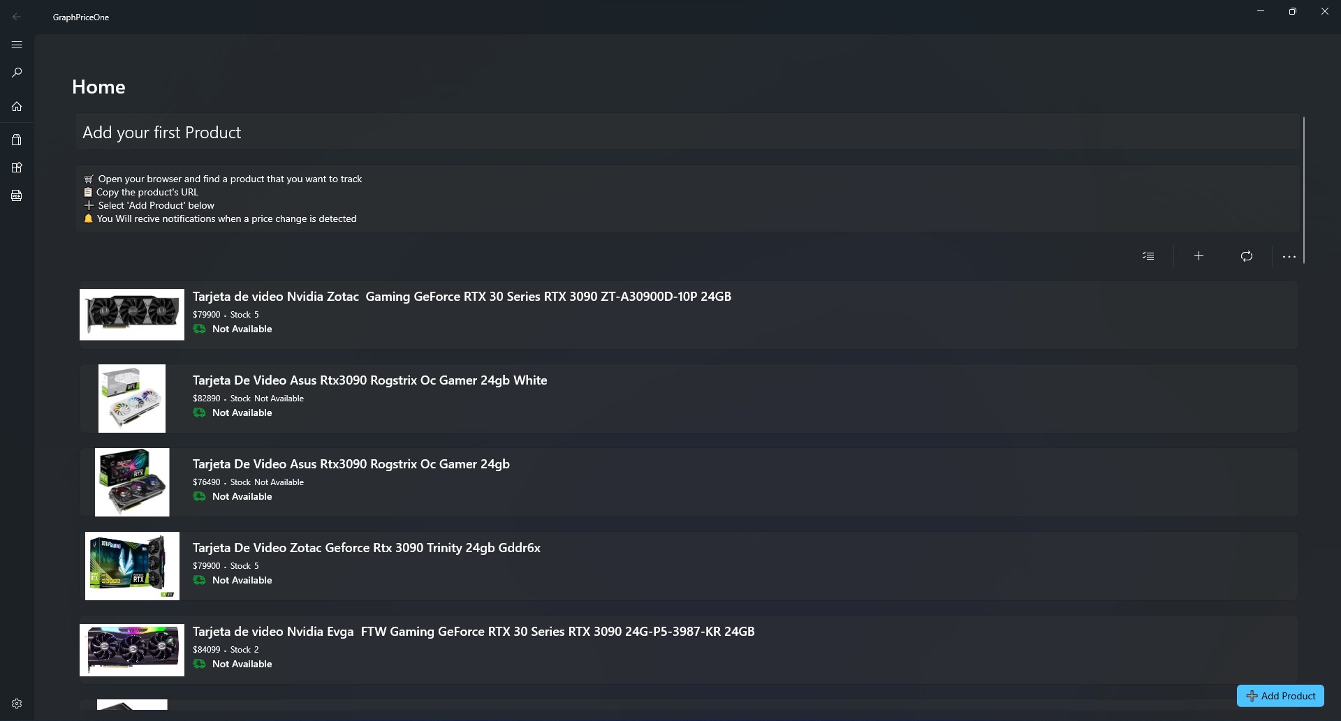 GraphPriceOne is a price tracker that allows you to track the price of a product and get a price alert notification whenever the price of a product you are interested in changes. All you need to do is copy the URL of the product web page, open GraphPriceOne and click 'Add Product'.