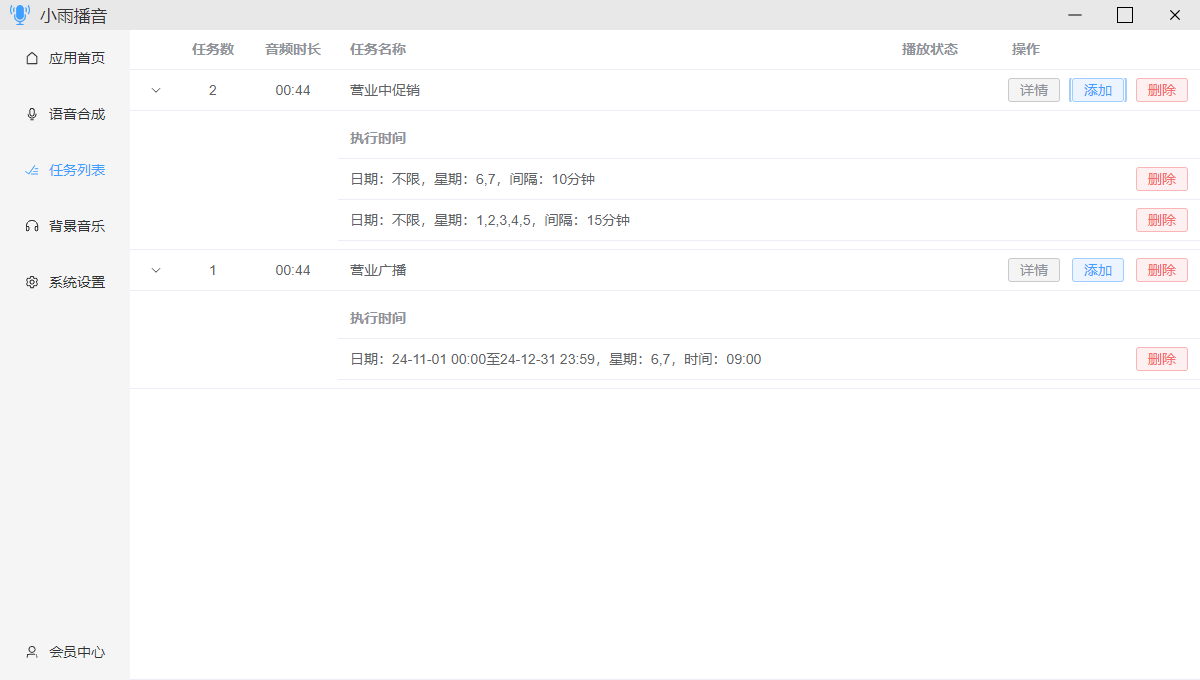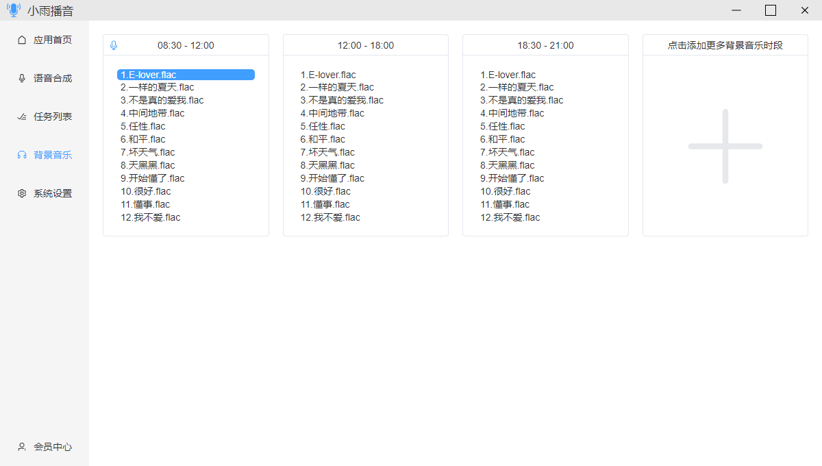 提供语音合成,定时播放,定时背景音等功能
