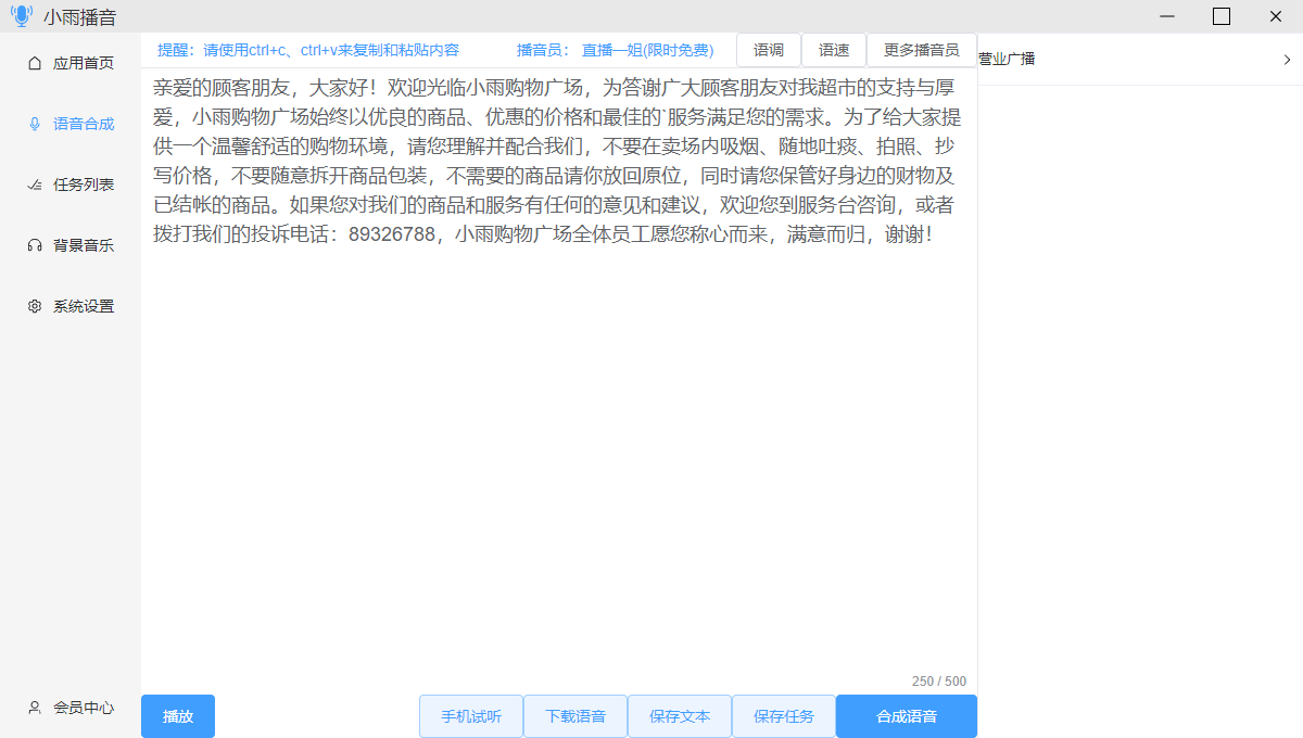 Step 4: Use 小雨播音