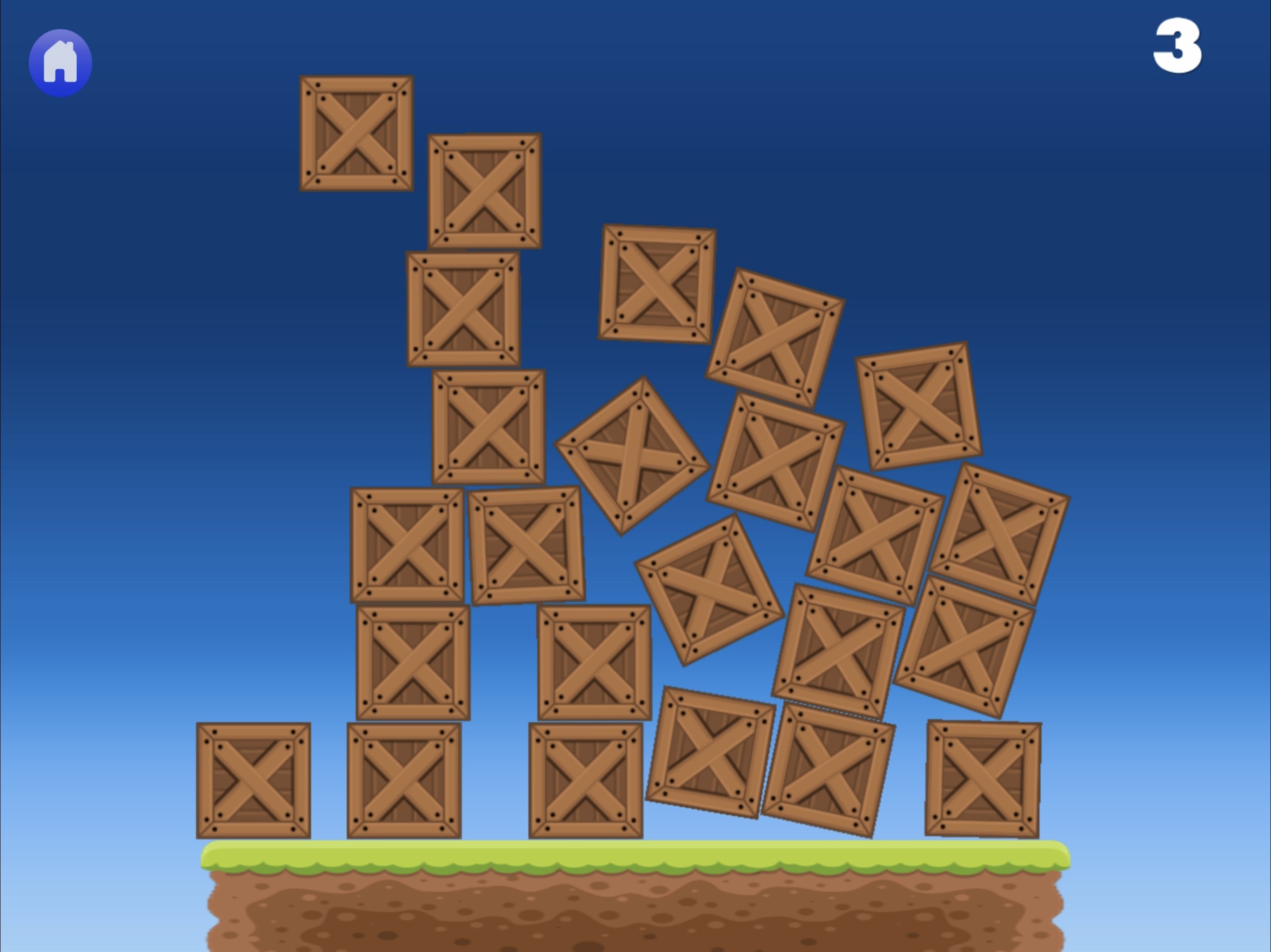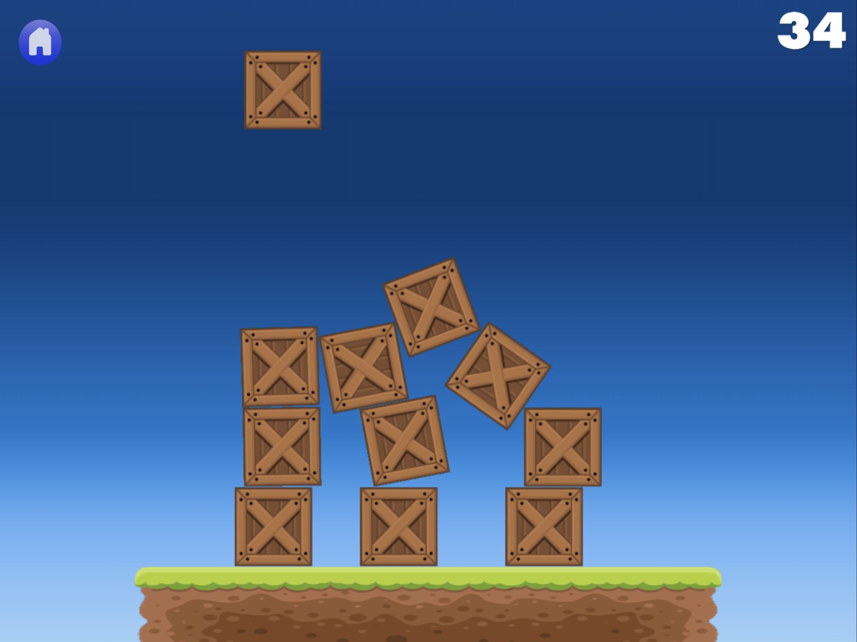 Crates remembers your last score. There is a practice mode and then 3 timed modes, with a smaller and shrinking stacking platform for each mode.