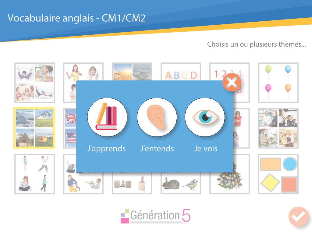 Cette application très simple d'emploi va aider les élèves de cours moyen (9-11 ans) à acquérir ou à développer leur vocabulaire anglais.