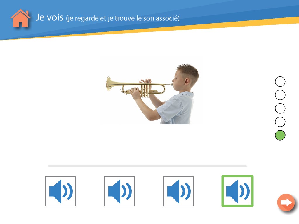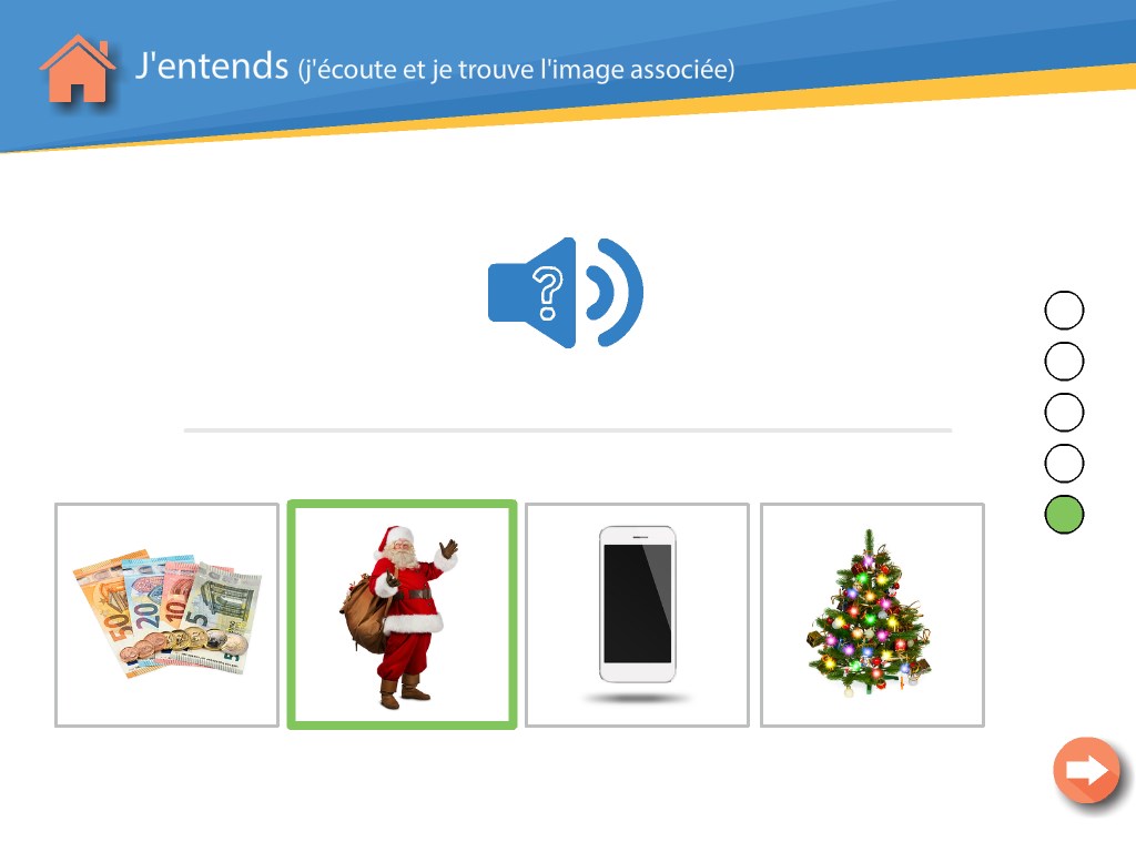 Je vois : il cherche parmi quatre propositions l'expression orale associée à l'image affichée.