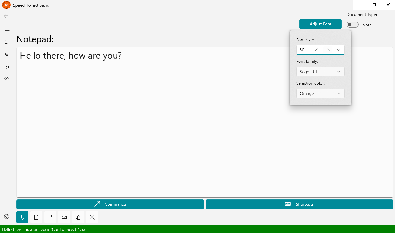 SpeechToText Basic converts spoken words into text with an accuracy of 100%, most of the time! The app offers multiple voice commands for the full control of the generated text.