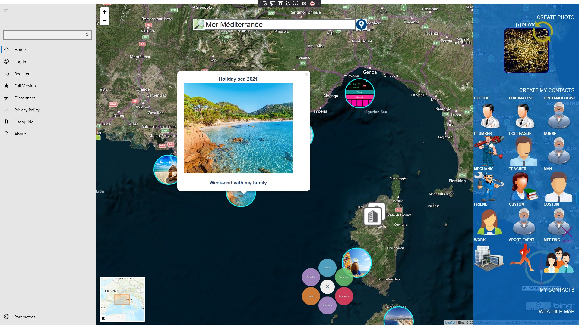 Create photo tiles in the world mapManage your photo librariesCreate contact tiles in the world mapDisplay weather mapDisplay market tiles around you
