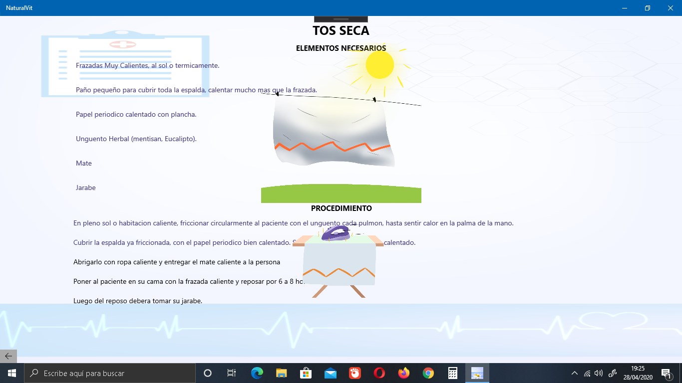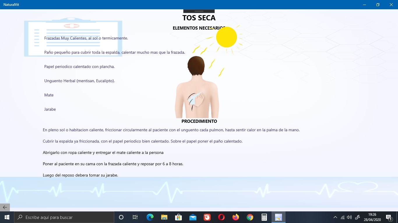 La salud puede beneficiarse mucho, de tratamientos naturales, para dolencias como la Tos, Fiebre y otras, para tal motivo se presenta diversas soluciones para el tratamiento, enfocados en procedimientos con productos naturales. Hierbas y mates, además de técnicas para poder aliviar y mejorar la salud naturalmente.