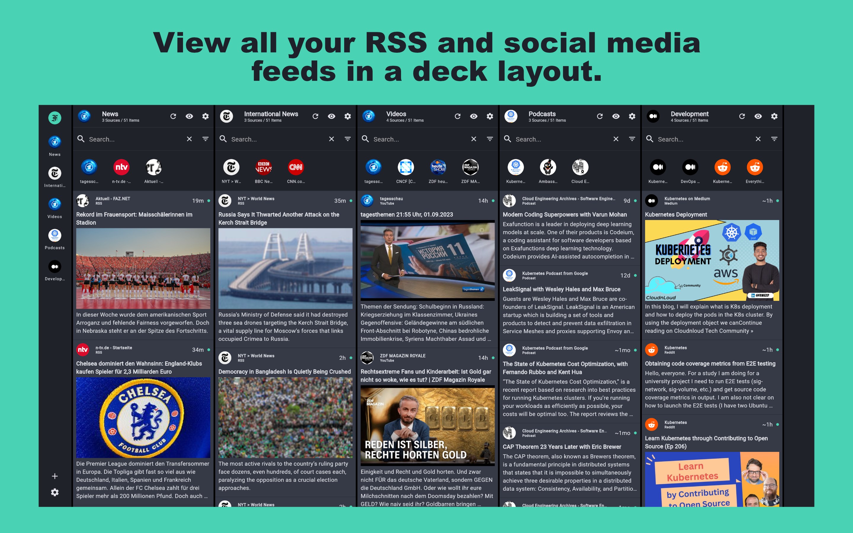 FeedDeck is an open source RSS and social media feed reader, inspired by TweetDeck. FeedDeck allows you to follow your favorite feeds in one place on all platforms. FeedDeck is written in Flutter and uses Supabase and Deno as it's backend.