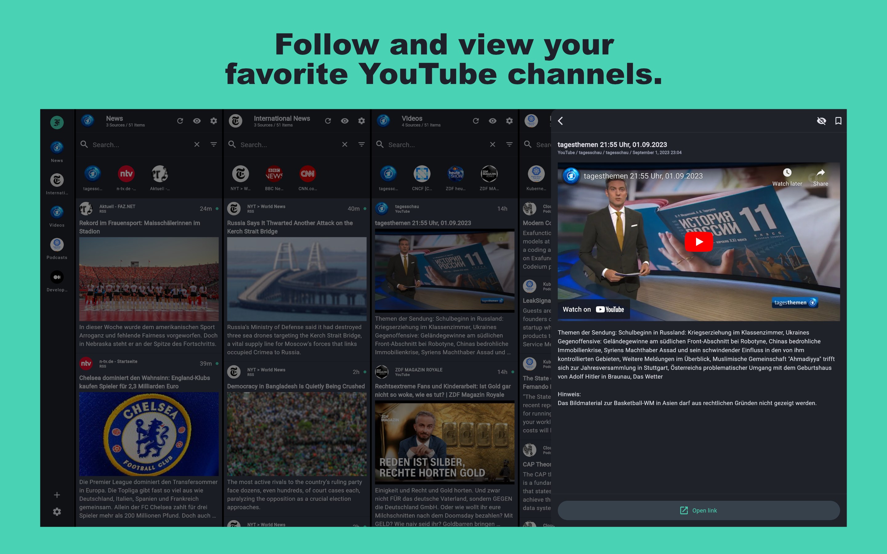 - YouTube: Follow and view your favorite YouTube channels.