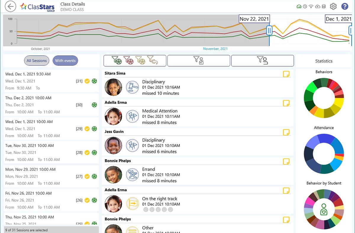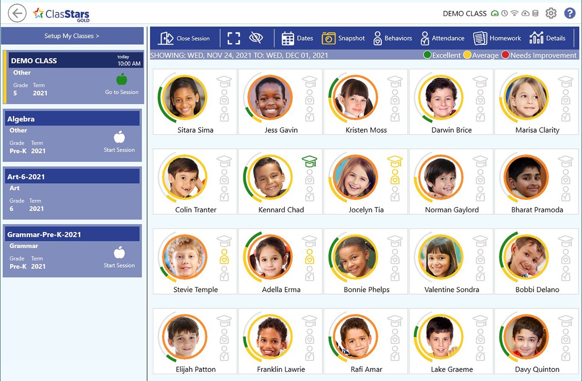 ClasStars empowers teachers to understand each student’s unique learning process and to enable the teacher to have a positive relationship with each and every student in the classroom. We do this by providing a simple yet powerful interface to record student attendance and behaviors. The system then provides continuous visual feedback alerting the teacher to possible issues so that they can be mitigated early on.