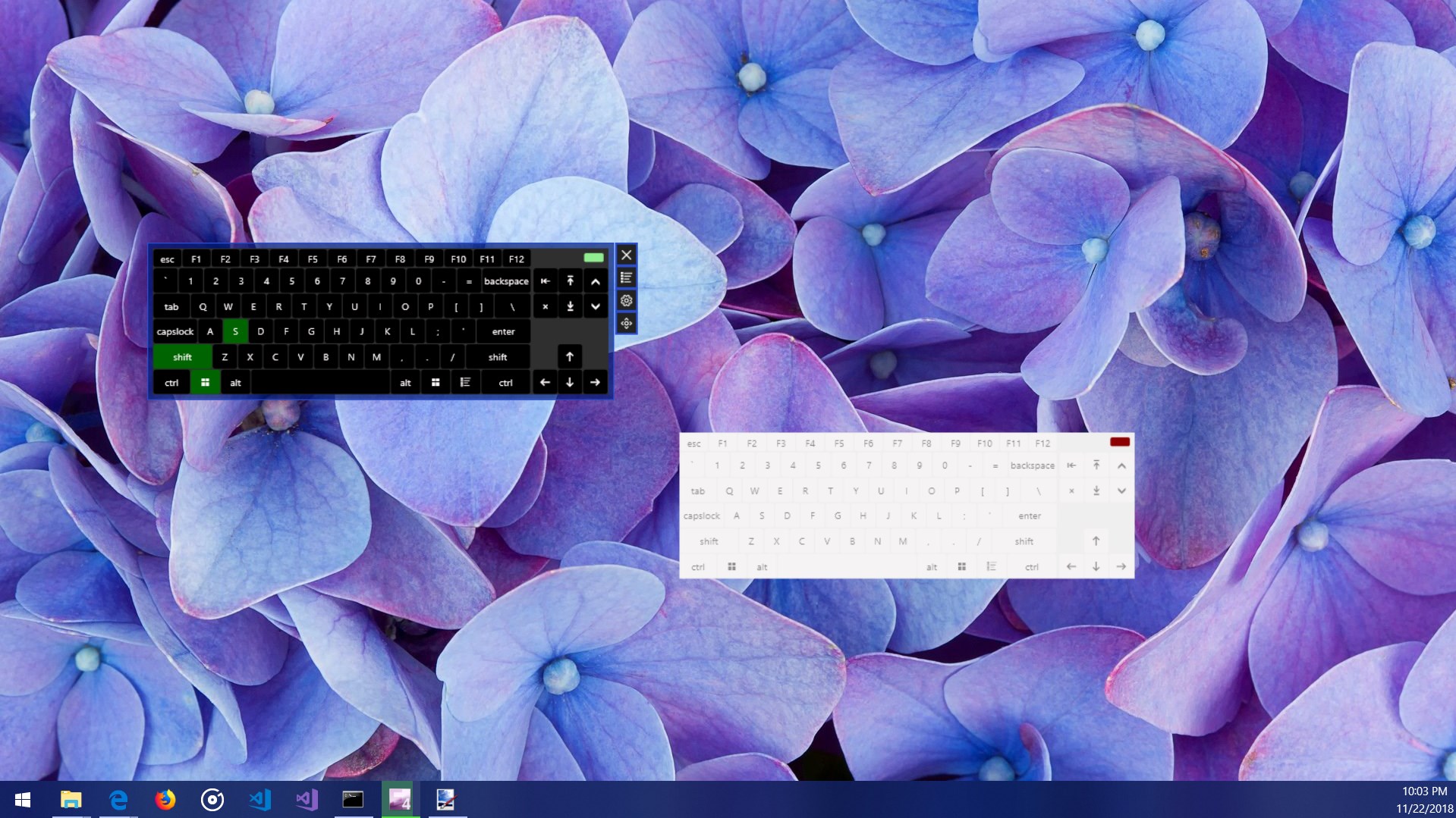 Light or dark themesDisplay keyboard key presses.